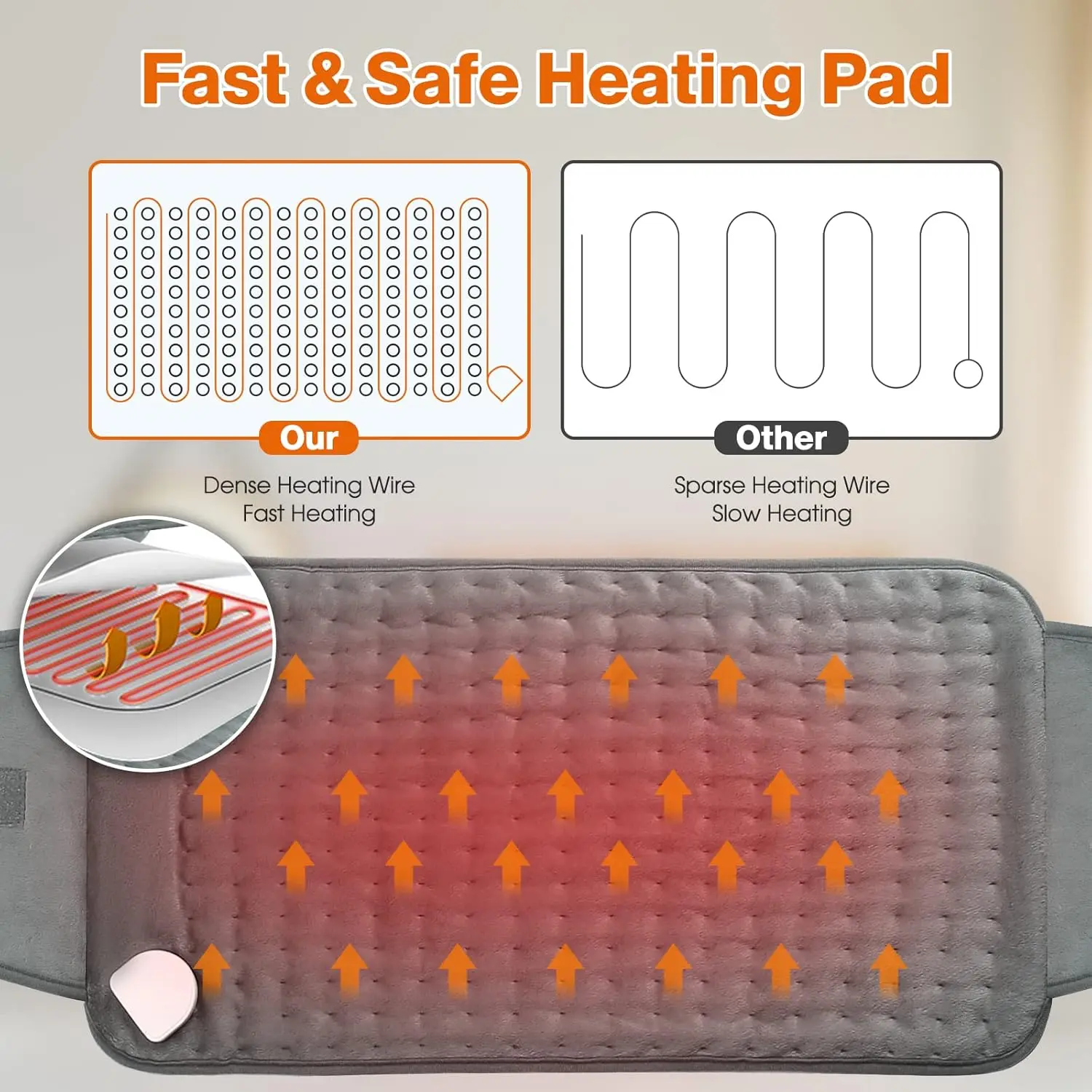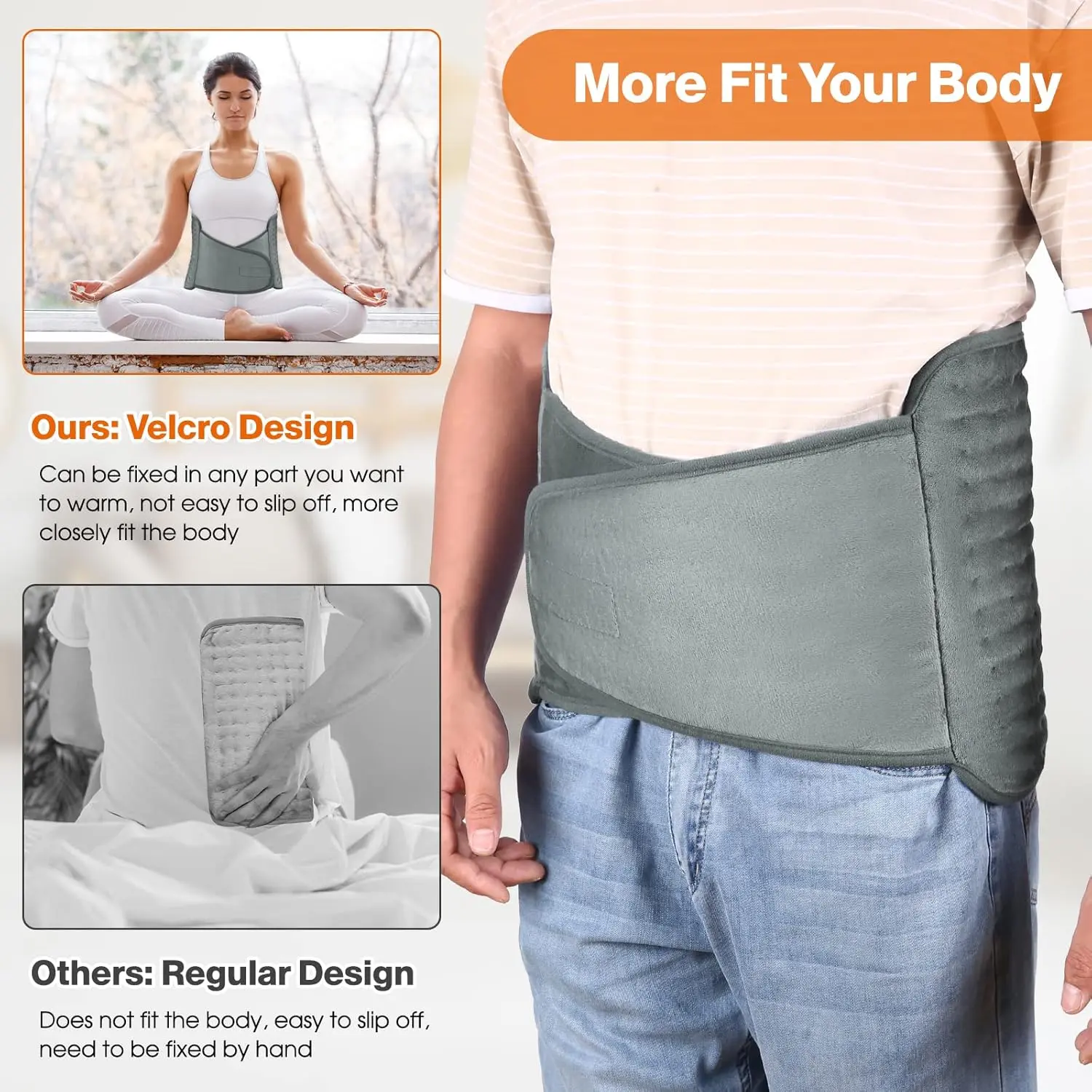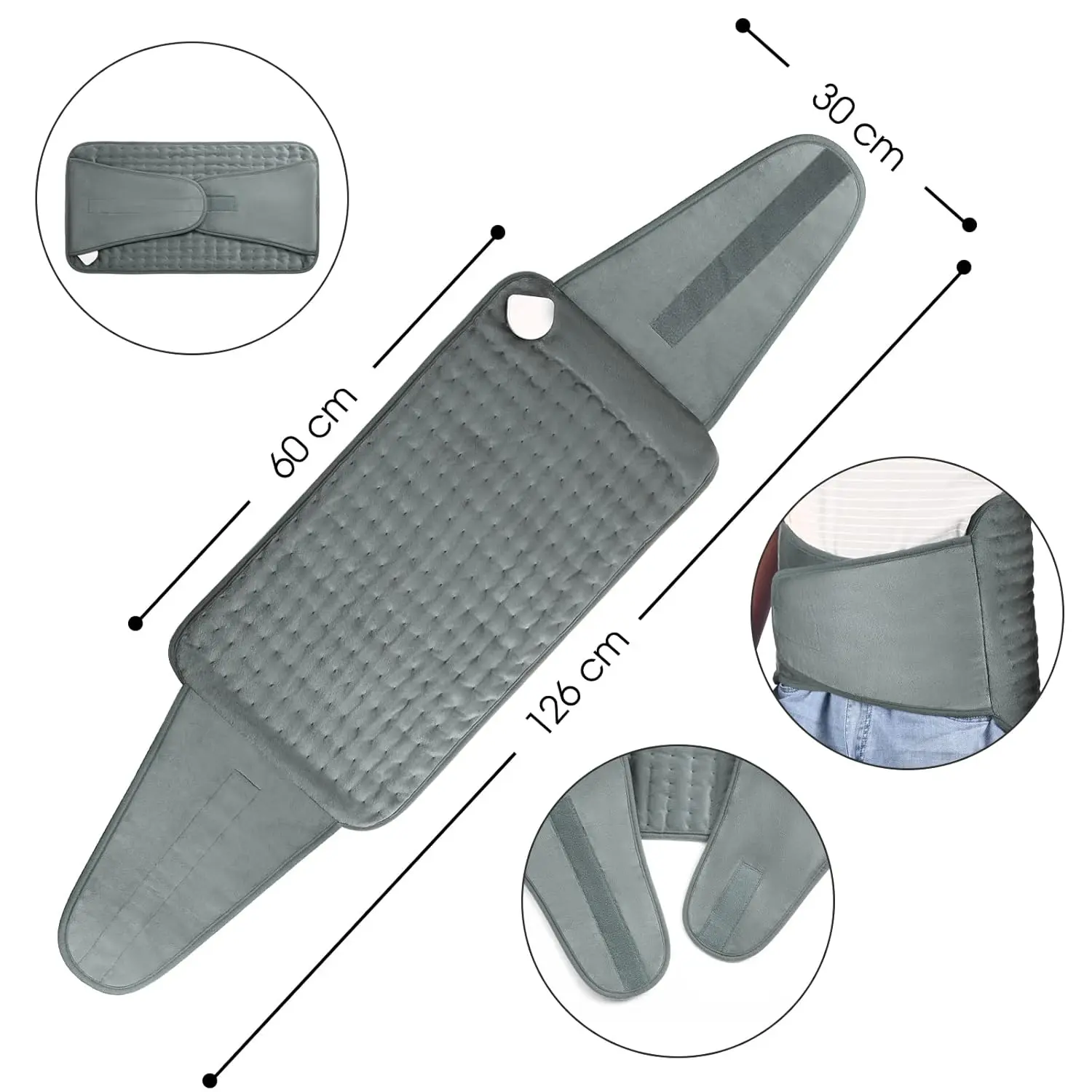 Experience soothing warmth and relief with our Heating Pad for Pain Relief. Designed for ultimate comfort and convenience, this heating pad provides targeted heat therapy to alleviate muscle soreness and promote relaxation. Whether you’re battling back pain, neck stiffness, or general aches, this pad delivers gentle, consistent warmth to ease discomfort. Enjoy personalized comfort with adjustable temperature settings and a convenient timer. The soft, plush material ensures a cozy experience, while the washable design makes maintenance a breeze. Say goodbye to cold days and hello to warm, therapeutic relief with this must-have heating pad. Its innovative design with velcro straps, guarantees a perfect fit for any body type. With rapid heating you will enjoy the temperature almost instantly after turning it on. Whether you’re working from home, relaxing on the couch, or even traveling, this versatile heating pad can provide on-the-go relief from muscle pain, discomfort, and fatigue, making it an essential companion for anyone seeking warmth, comfort, and pain relief. The auto-shutoff feature provides peace of mind knowing the pad will turn off after a set period of time, preventing overheating. This feature adds safety and energy-saving benefits to the product. The dense heating wire arrangement ensures even heat distribution, preventing hot spots and providing consistent warmth to the targeted area.