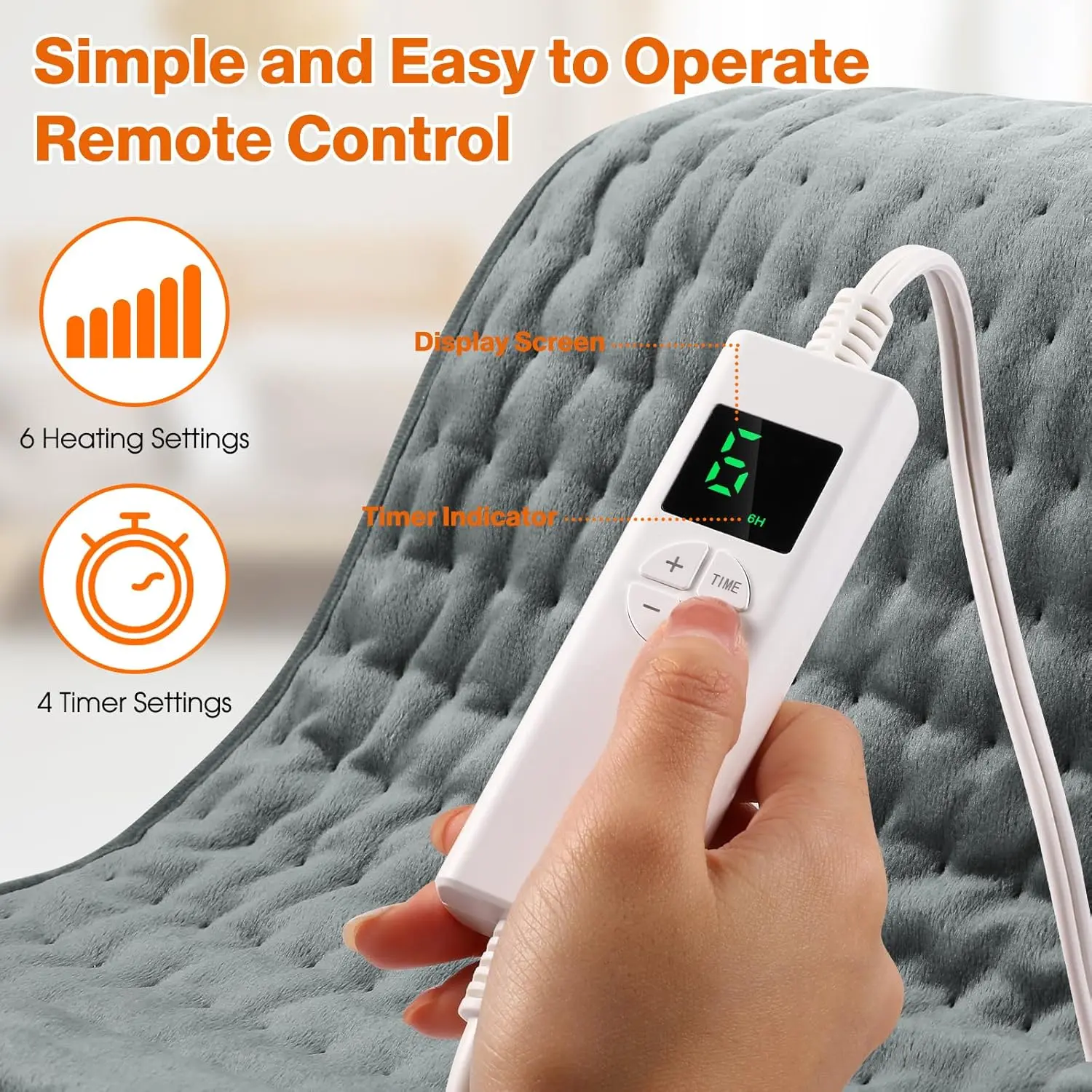 • 4 timer settings (1H/2H/4H/6H) for safe and convenient use.