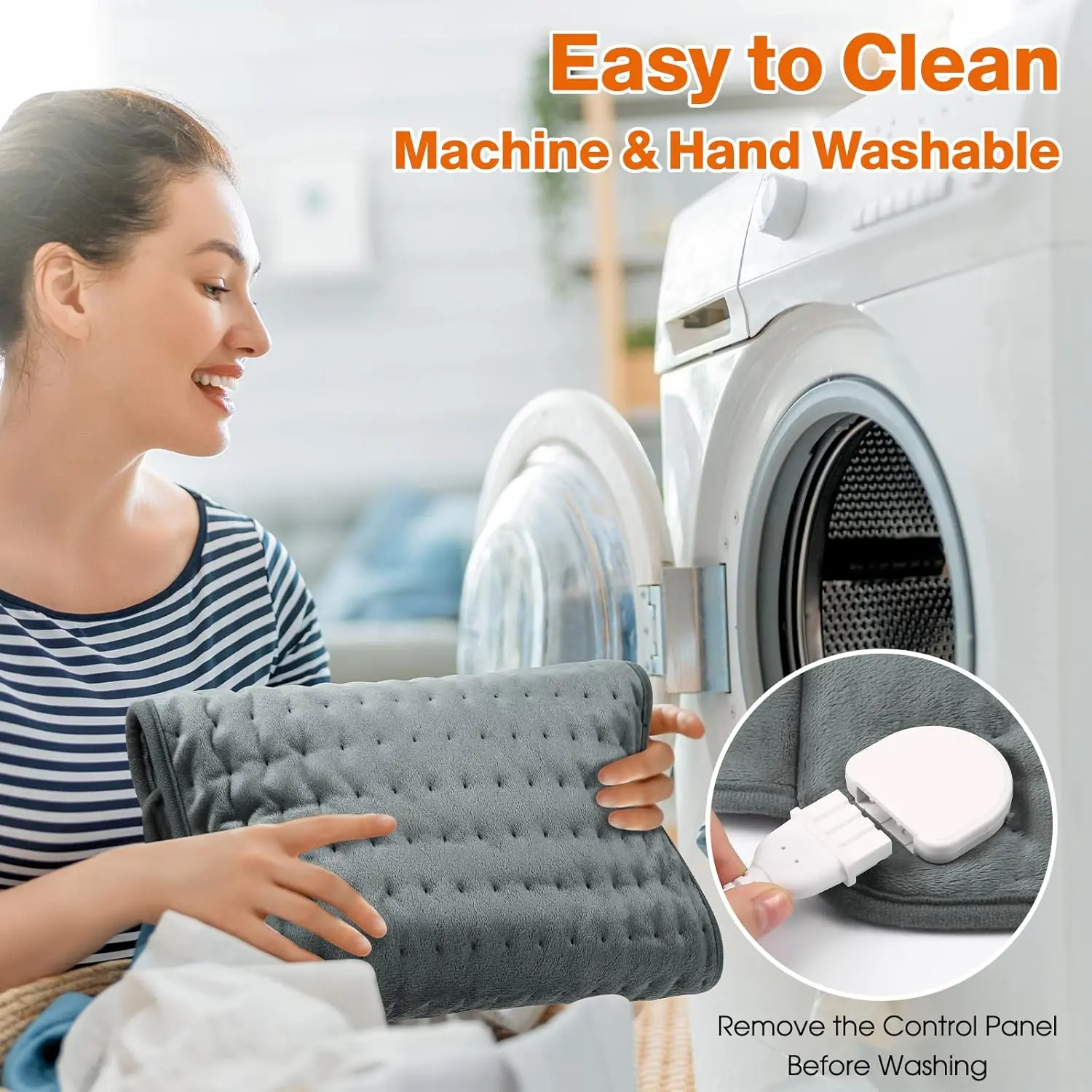 • Easy to clean and machine washable (detach power connector first).