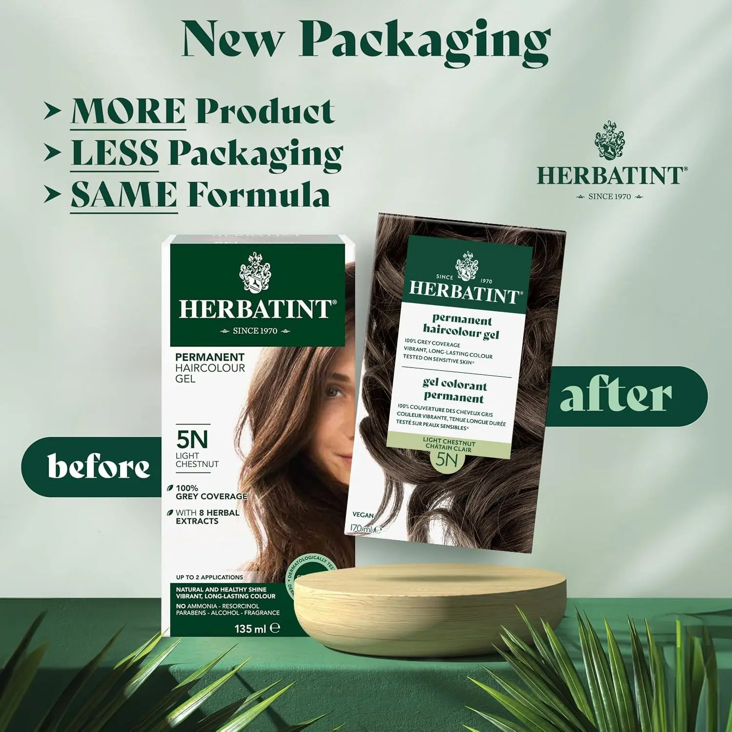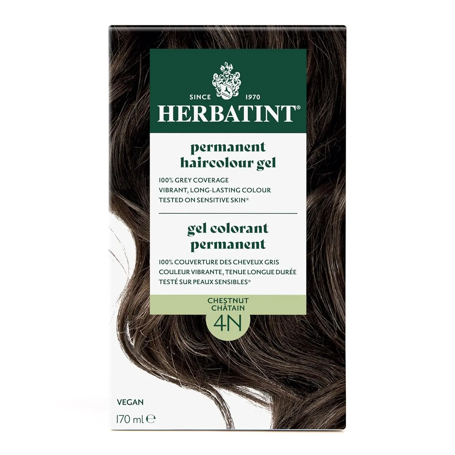 Achieve natural chestnut hair colour with Herbatint 4N. This permanent dye gel with plant extracts delivers vibrant, long-lasting colour, covers white hair, and provides intense, durable shine.