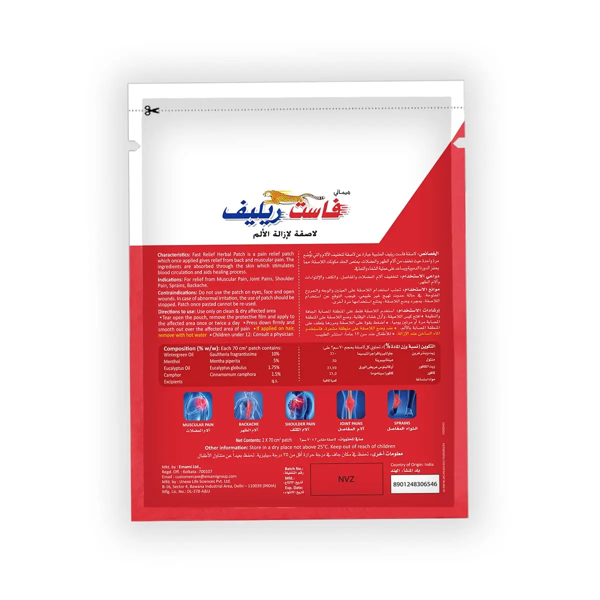 Experience fast and effective pain relief with the Himani Fast Relief Pain Relief Patch! Infused with a powerful blend of natural herbs, this patch provides targeted relief from a variety of aches and pains. The unique formula penetrates quickly to the source of discomfort, delivering a soothing heating and cooling sensation for rapid results in minutes. Say goodbye to muscular pain, backaches, joint pains, body aches, and sprains. The Himani Pain Relief Patch is designed for comfort and convenience. It’s easy to apply and just as easy to peel off, leaving no stains or marks on your skin. The patch contains Eucalyptus oil, Camphor, Thymol, Menthol, and Clove, which are known for their analgesic and anti-inflammatory properties. Get back to your active life with the fast-acting and mess-free relief of the Himani Pain Relief Patch. Each patch is designed for single use and delivers consistent, reliable pain relief wherever you need it most. Keep a pack at home, in your gym bag, or at the office for immediate relief whenever pain strikes. Embrace a pain-free life with Himani Fast Relief!