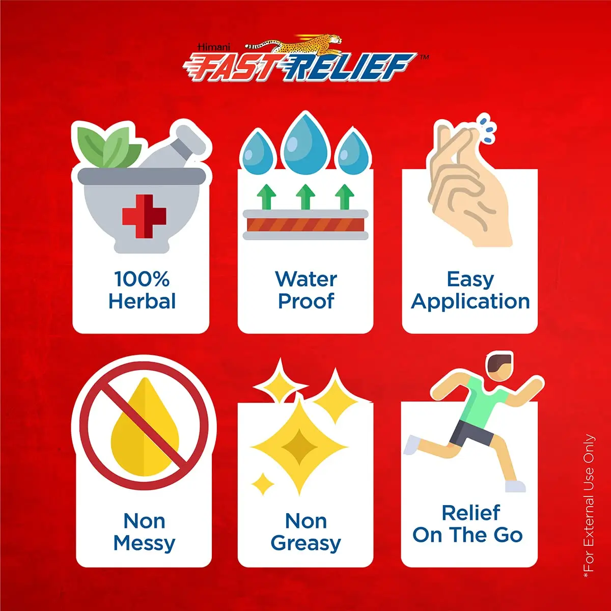 • Relief from muscular pain, backache, joint pains, body ache, and sprains
