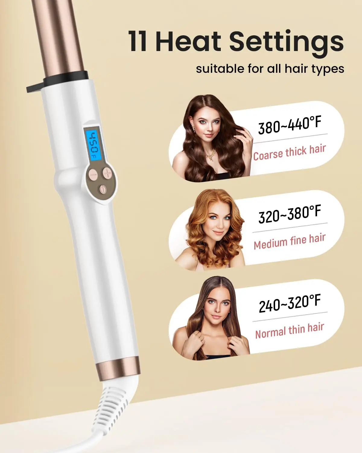 • 11 Heat Settings: Adjustable temperature for all hair types (225-450℉).