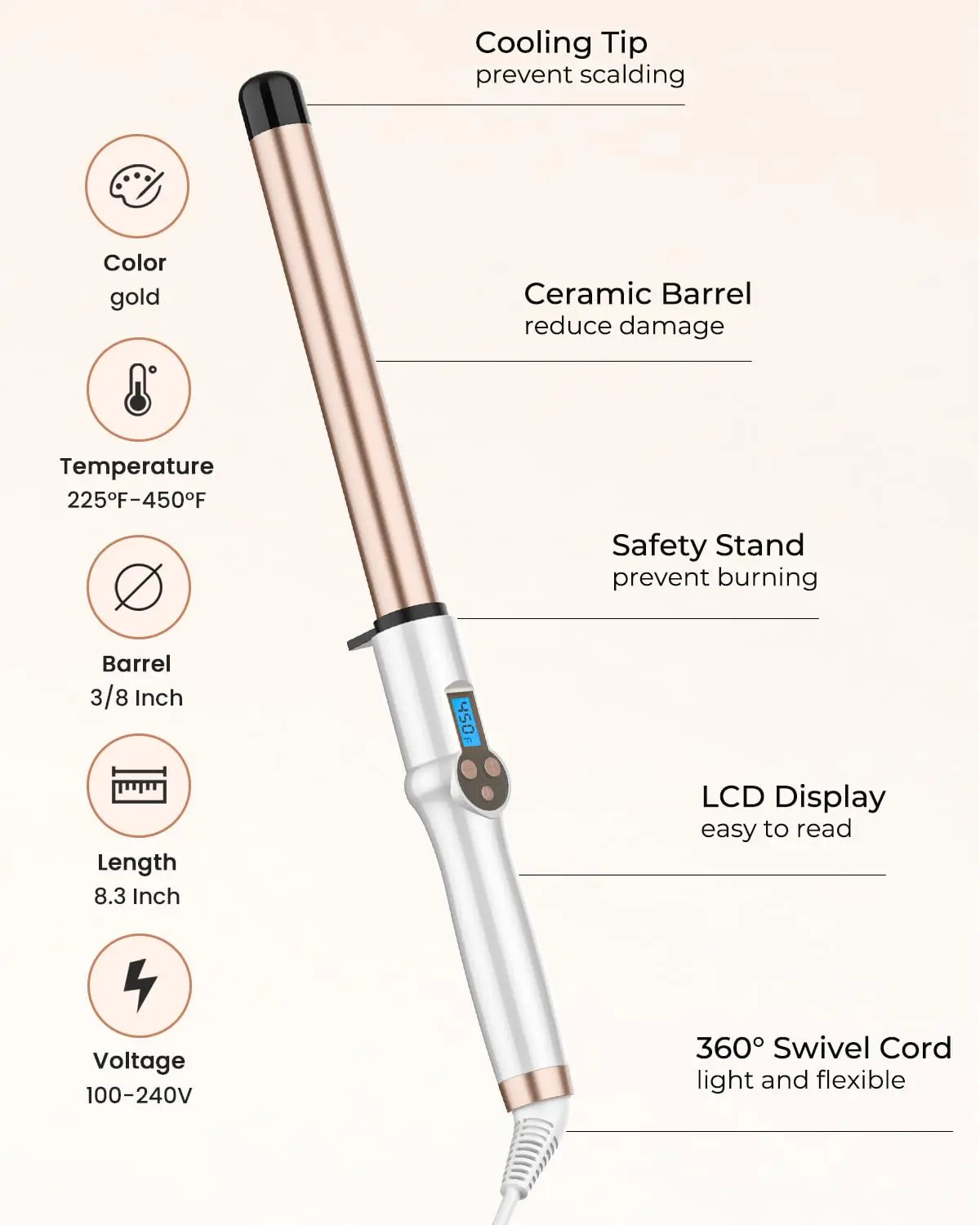 • 1 Inch Extra Long Barrel: Styles more hair at once, saving time.