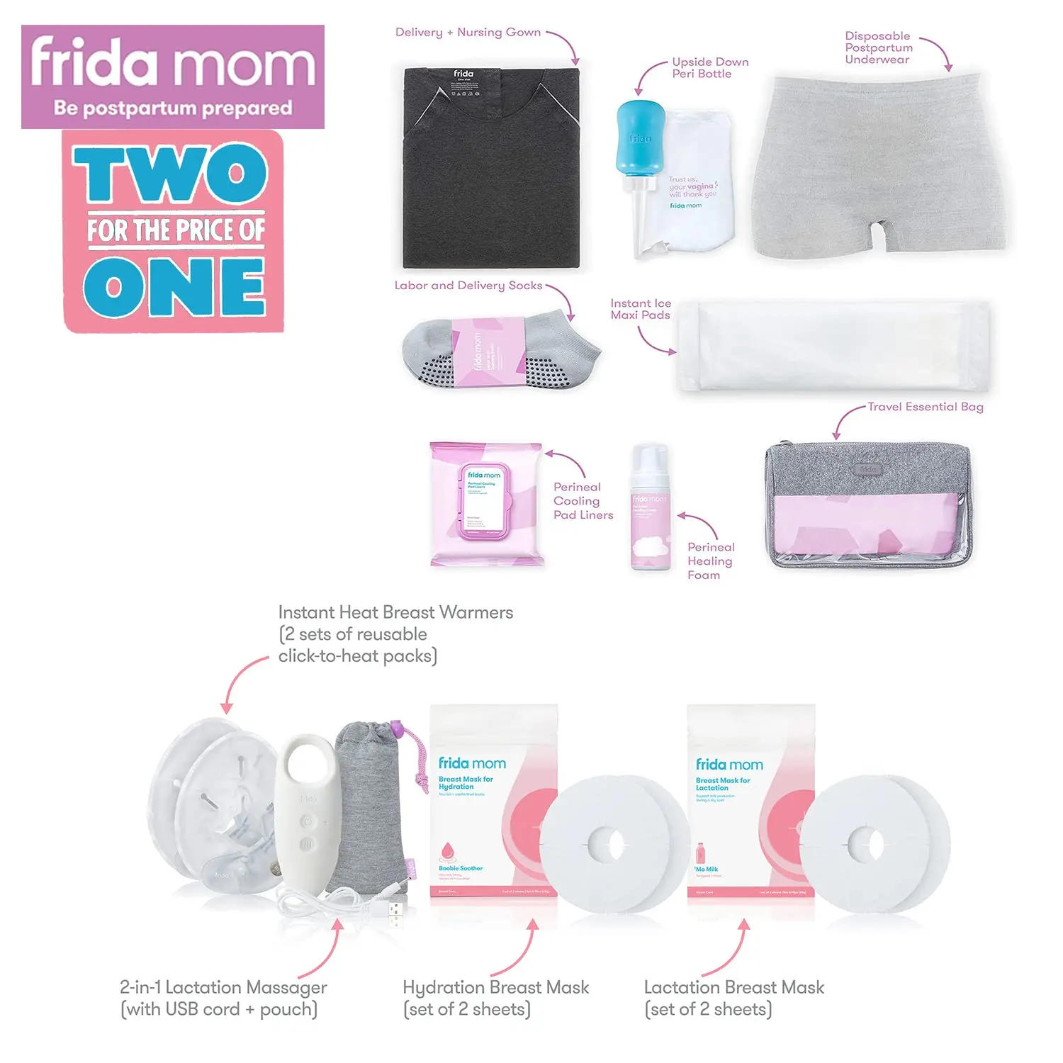 • Complete hospital kit for postpartum recovery and breast care