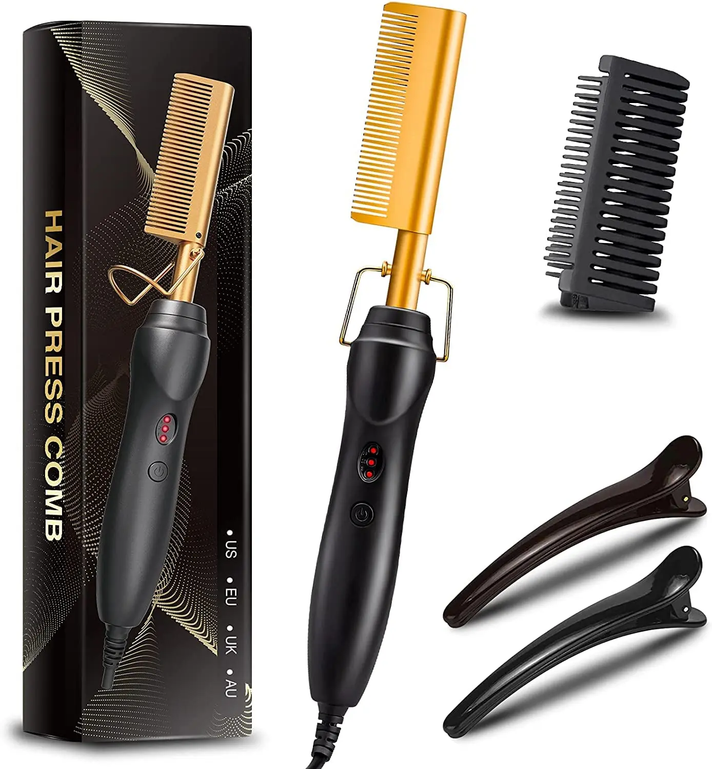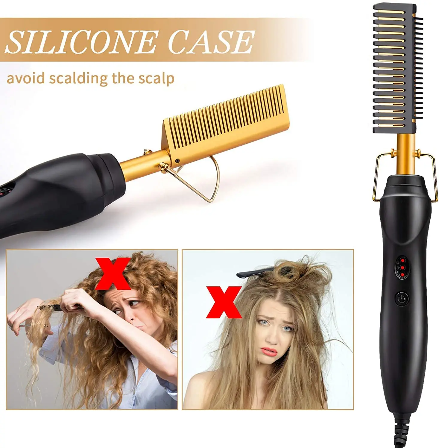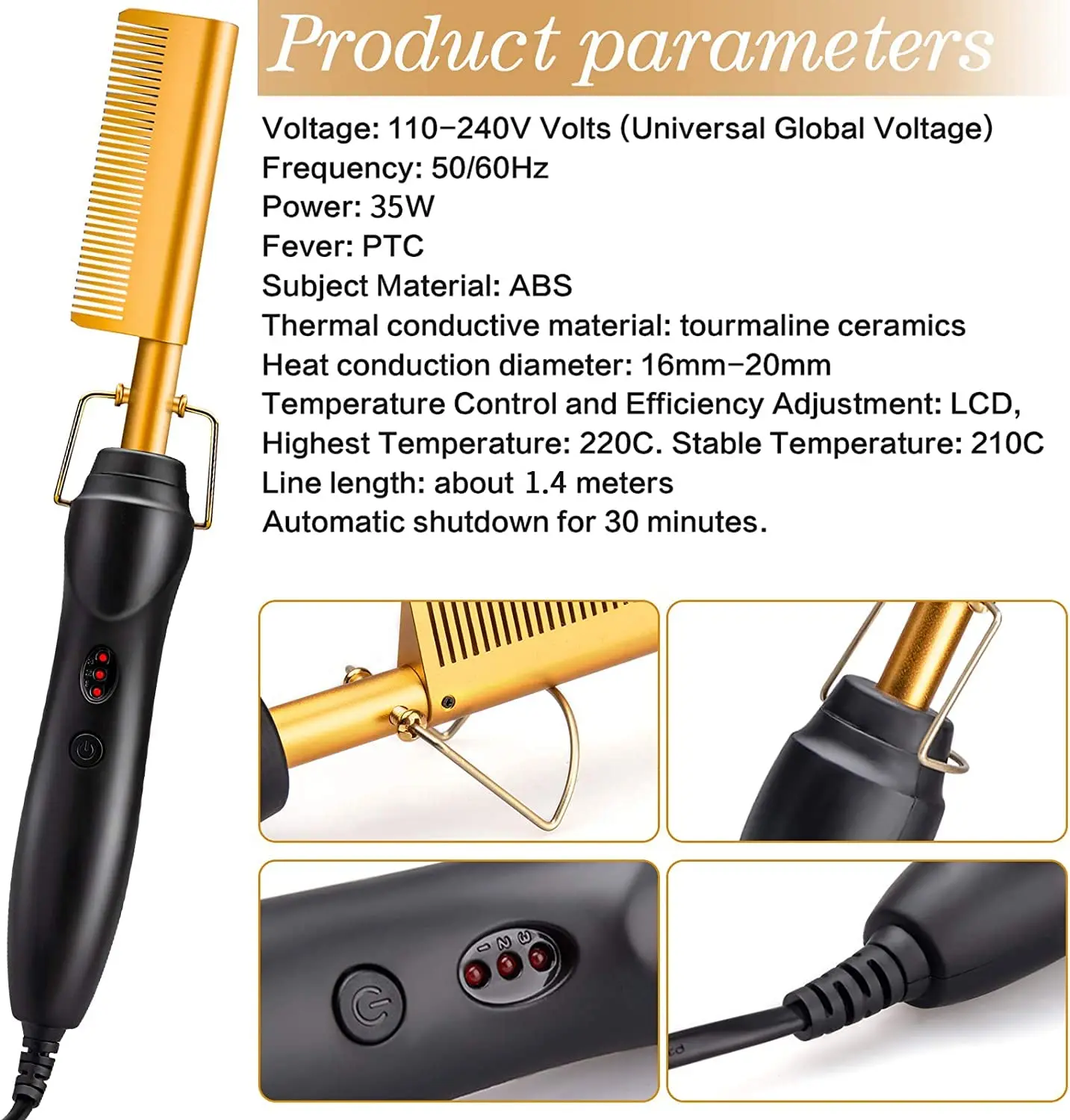Achieve salon-quality straight hair at home with our Ceramic Hot Comb Hair Straightener. This innovative heated brush combines the power of ceramic technology with a user-friendly design to deliver smooth, shiny, and frizz-free results in minutes. The ceramic comb ensures even heat distribution, eliminating hot spots and protecting your hair from damage. With rapid heating capabilities, this electric comb reaches its maximum temperature of 450°F in just 20-30 seconds, allowing you to quickly straighten even the thickest, most unruly hair. Safety is paramount, featuring an anti-scald case to prevent burns and an automatic shut-off function that activates after 60 minutes of inactivity. Its lightweight and compact design makes it perfect for on-the-go styling, whether you’re traveling, attending a party, or going on a date. Plus, it makes a thoughtful and practical gift for friends and family. This hot comb is your go-to solution for achieving sleek, straight hair effortlessly and safely. Experience the difference of ceramic technology and enjoy beautiful, healthy-looking hair every day. Please remember to keep away from children, ensuring a safe environment. Should you have any questions or concerns, our customer support team is always available to assist you.