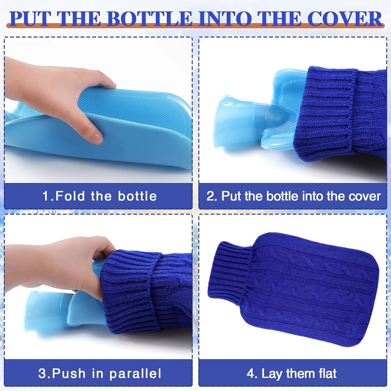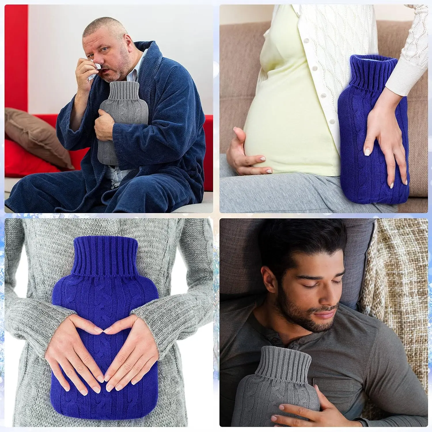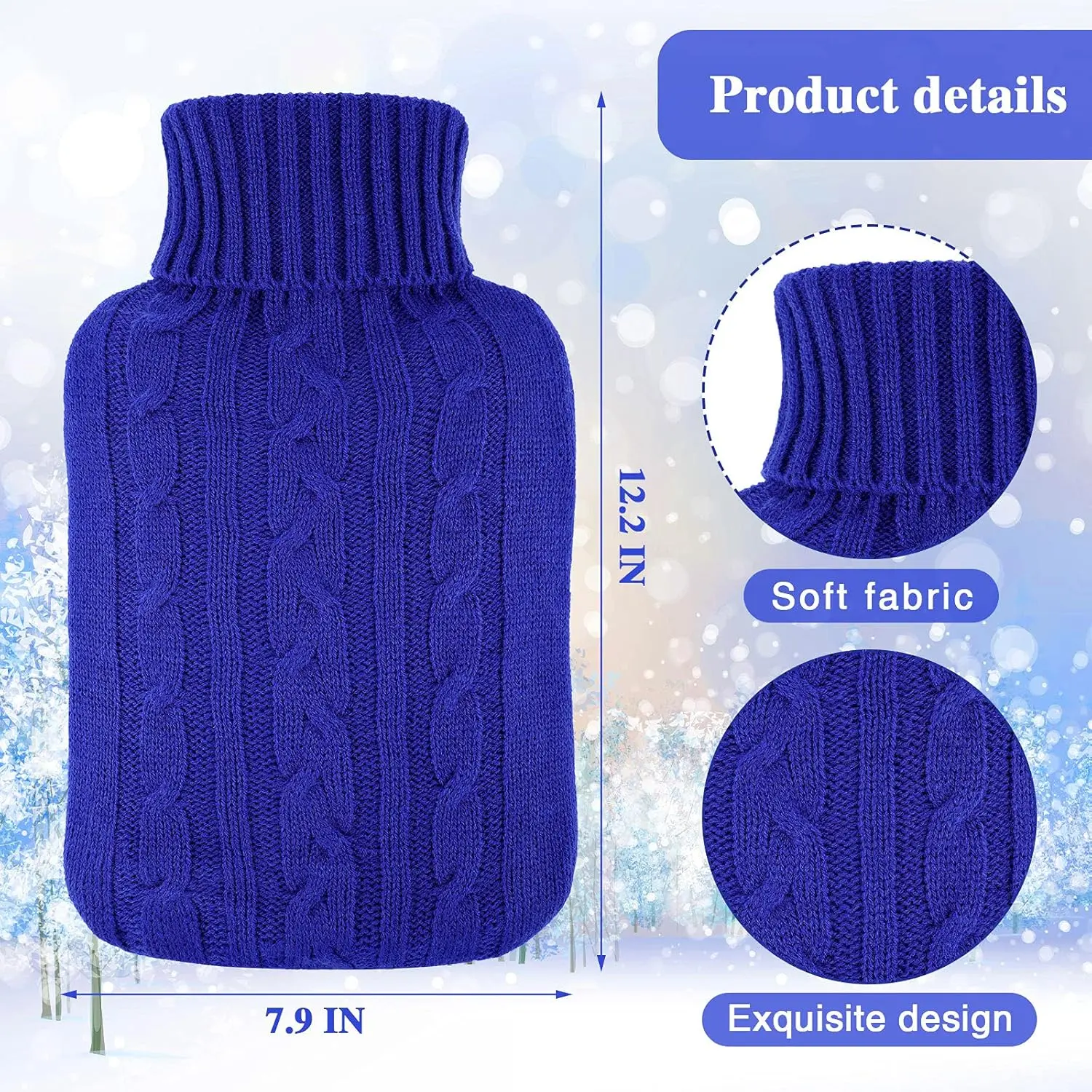 Embrace the warmth and comfort of our Hot Water Bottle Cover Knitted Sweaters! This set includes two charming knitted covers designed to perfectly fit standard 2-liter hot water bottles (water bottles not included). Choose your favorite color to add a touch of cozy style to your hot water bottle. Crafted from soft, breathable knitted fabric, these covers provide a gentle, warm touch, making them ideal for snuggling up on chilly evenings. They’re also lightweight and durable, ensuring long-lasting use. Not just a pretty face, these covers help maintain the temperature of your hot water bottle for extended periods, providing soothing relief for muscle aches, menstrual cramps, or sports injuries. They can also be used with cold water for cold compresses. These adorable bottle sweaters also make a thoughtful winter gift for family, friends, classmates, girlfriends, colleagues, and neighbors. Show your love and care with this practical and heartwarming present! These are not just functional items, but also a great decoration for your hot water bottle. Add a touch of charm to your self-care routine with these knitted sweater covers! The knitted material is soft to the touch, and the covers are easy to slip on and off your hot water bottle. Keep your hot water bottle looking great and working its best with these essential accessories. Available in a variety of charming colors, you’re sure to find the perfect set to match your style. Give the gift of warmth and comfort this winter with our Hot Water Bottle Cover Knitted Sweaters!