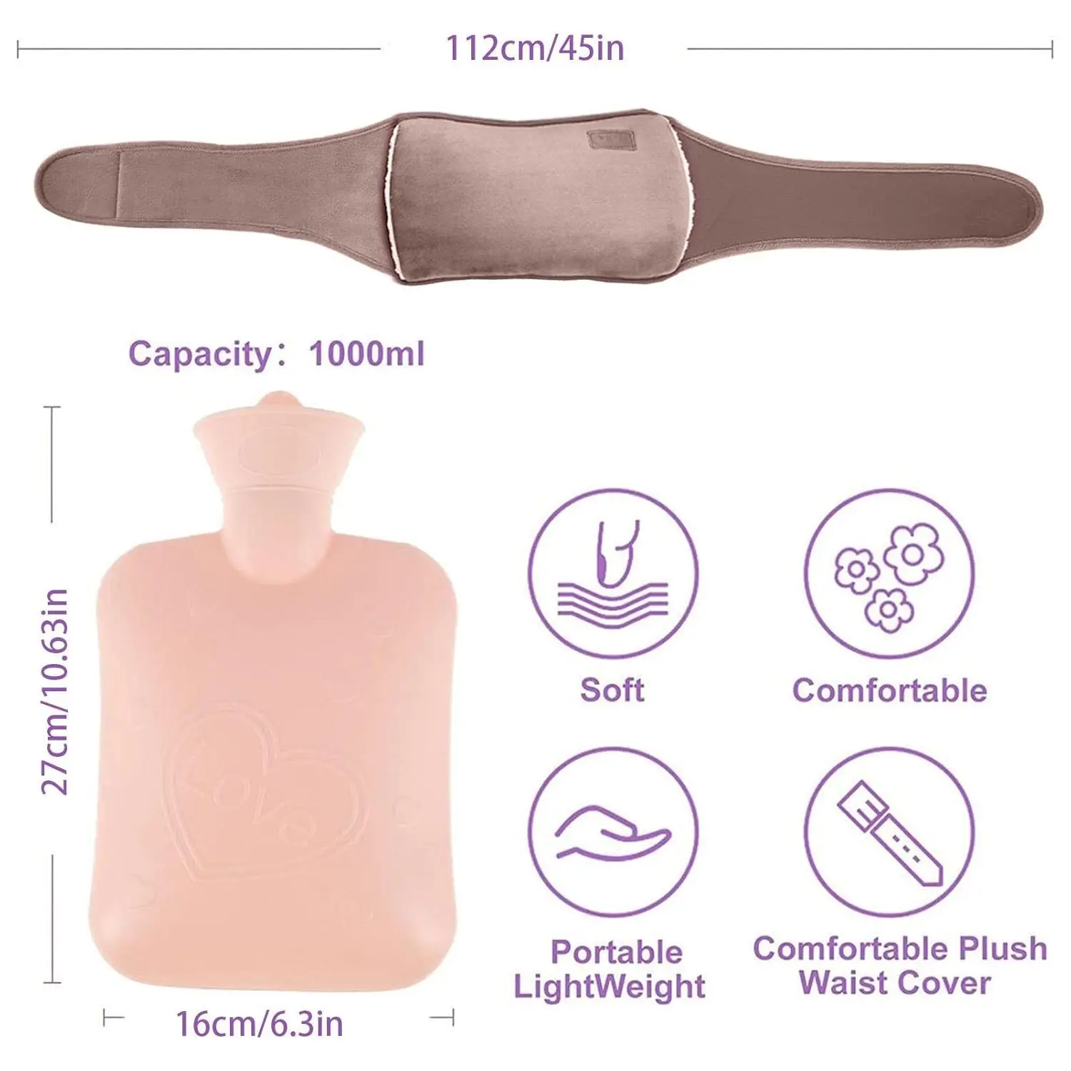 Experience soothing warmth and targeted pain relief with our Hot Water Bottle with Belt! This versatile set is designed to provide long-lasting comfort and relief for aches, pains, and cold weather blues. The included waist belt allows you to secure the hot water bottle comfortably against your body, providing hands-free warmth wherever you need it most. Perfect for relieving back pain, soothing menstrual cramps, warming cold feet, or simply relaxing tense muscles. The high-quality, leak-proof design ensures safe and reliable use, while the soft cover distributes heat evenly for optimal comfort. Say goodbye to discomfort and hello to soothing warmth with this essential winter companion. The set also includes a thermos hat to help retain heat longer, keeping you cozy and comfortable for extended periods. The splash stopper makes filling easy and mess-free. Enjoy the versatile uses indoors, outdoors, and even in the office.