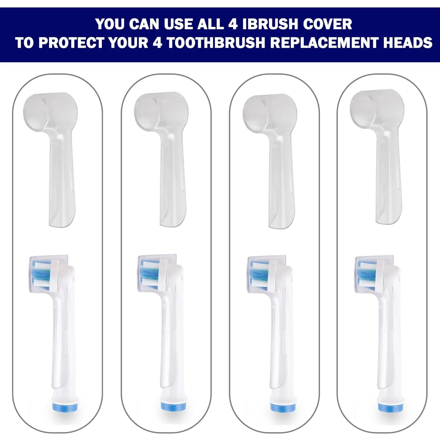 Keep your Oral-B electric toothbrush head clean and protected with the iBrush Toothbrush Head Covers! This 4-pack of durable covers is designed to fit nearly all Oral-B electric toothbrush models, providing a hygienic barrier against dust, dirt, and other contaminants. Made from high-quality, unbreakable materials, these covers offer long-lasting protection, ensuring your toothbrush stays clean and ready for use, whether you’re at home or traveling. The easy-to-use design allows for a secure fit without interfering with the toothbrush’s functionality. Prioritize your oral hygiene and safeguard your toothbrush with these essential accessories. They are also crafted from safe, non-toxic materials, offering peace of mind with every use. The compact and lightweight design makes them perfect for travel, ensuring your toothbrush remains protected on the go. Stop harmful bacterias. Keep your head clean and safe. These iBrush covers will keep your family safe from germs, these will extend the life of the brush, reducing the frequency of having to replace the entire brush. The design allows the toothbrush to dry completely. iBrush toothbrush cover is also safe for health. It does not contain any harmful chemicals or materials, making it a safe and responsible choice for your oral hygiene routine. If you are looking for a reliable and effective way to keep your toothbrush clean and hygienic, our electric toothbrush cover is the perfect solution. Whether you are looking to protect your toothbrush at home or while traveling, this cover provides the protection you need to ensure that your toothbrush stays clean and ready for use.