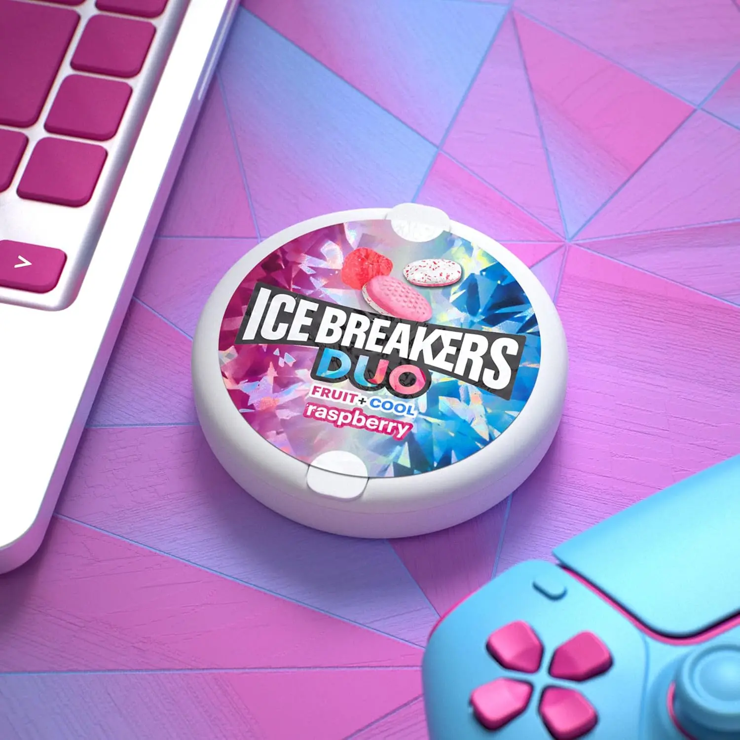 • Eight 1.3 oz tins of ICE BREAKERS DUO Raspberry Flavored Sugar Free Mints