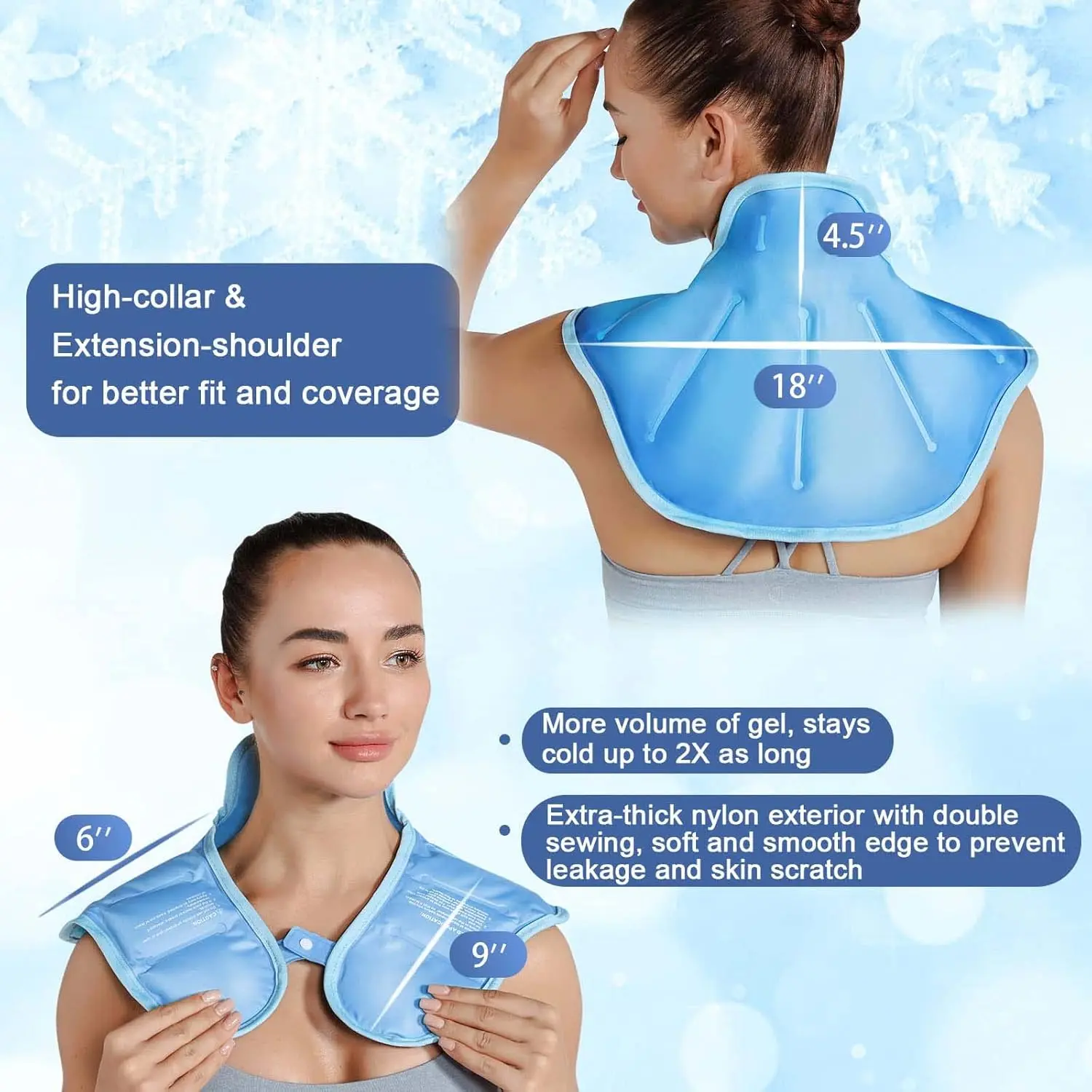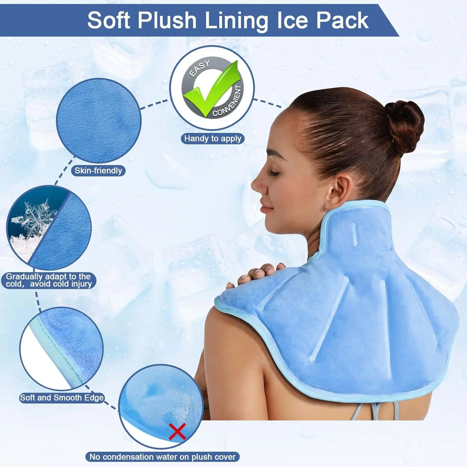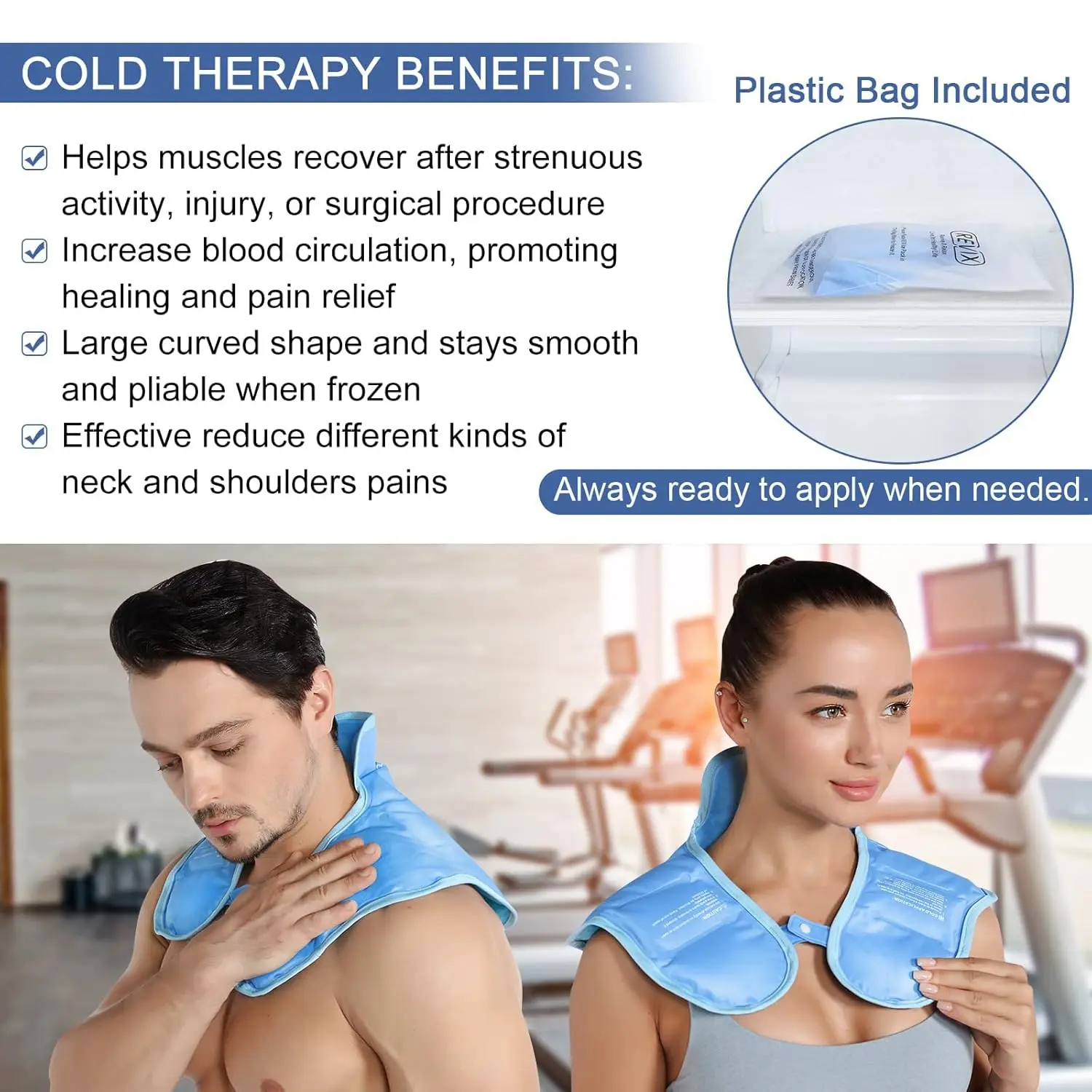 Experience soothing relief with our Ice Pack for Neck and Shoulders. This innovative wrap combines targeted cold therapy with superior comfort. The plush cover prevents frostbite and condensation, while the optional nylon cover provides deeper penetration for intense relief. Designed with a high collar and extended shoulder coverage, this ice pack targets the entire upper back, effectively alleviating muscle spasms, shoulder rotator cuff tears, and sports injuries. Filled with 30% more gel than competitors, and boasting a lower freezing point (-13℉), the gel remains smooth and pliable even when frozen, ensuring maximum comfort and effectiveness. Made from premium materials with unique styling and fine craftsmanship, this ice wrap makes a thoughtful and practical gift. The hands-free design, complete with a snap fastener, allows for a full range of movement while providing targeted relief to injured muscles, joints, and tissues. Perfect for post-gym recovery or soothing everyday aches and pains, this ice pack will become your go-to solution for neck and shoulder pain relief. Enjoy the freedom to move while you heal.