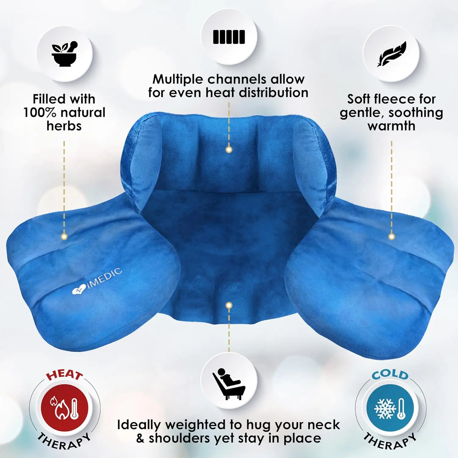Experience soothing relief and comfort with the iMedic Neck Warmer. This versatile microwave heat pad offers both hot and cold therapy to address a variety of aches, pains, and stressors. In just two minutes in the microwave, the heated neck warmer wrap provides up to 20 minutes of concentrated, soothing heat to your shoulders, back, and neck, delivering fast and effective warmth and relief. Ideal for easing muscle tension, stiffness, and general discomfort.