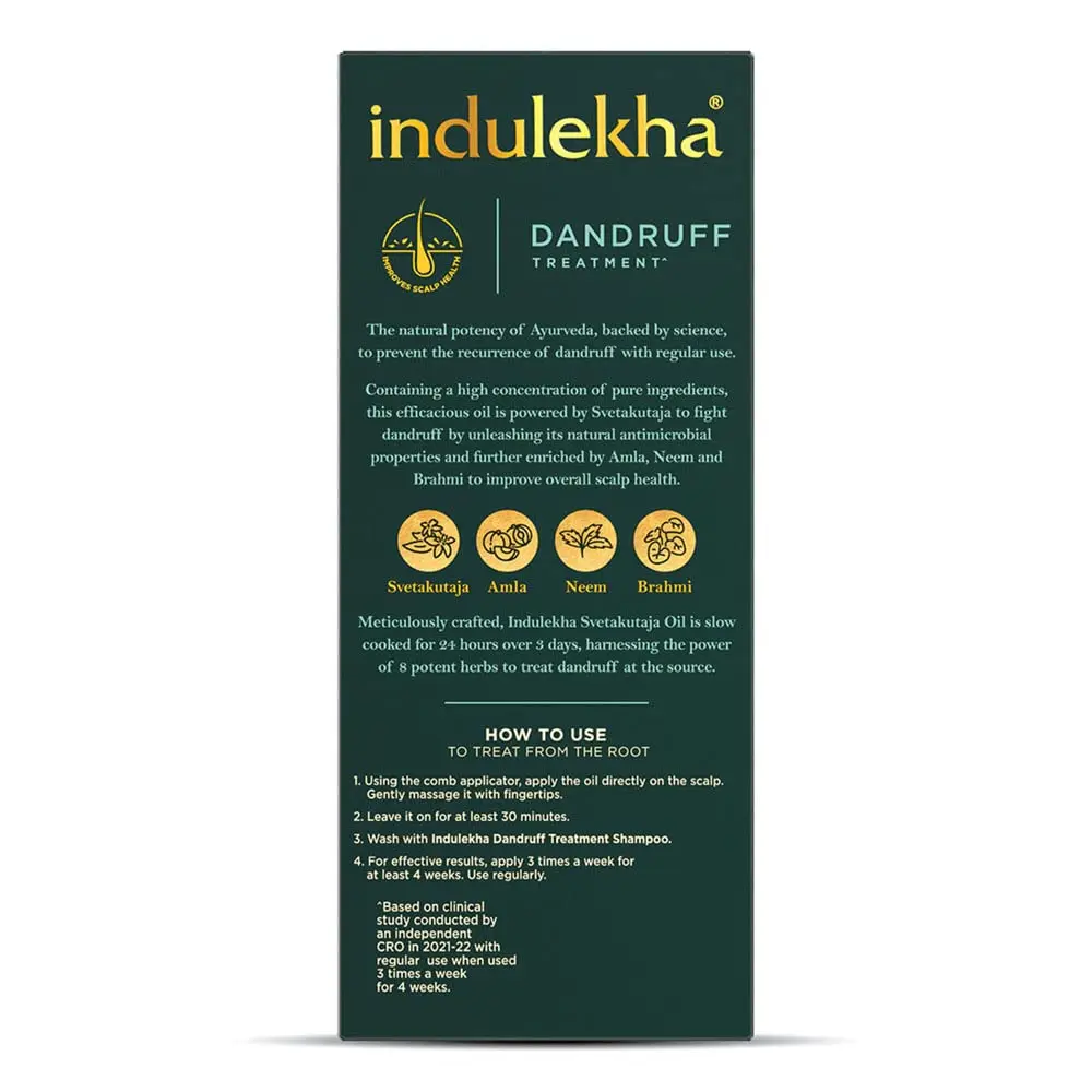 Indulekha Svetakutaja Hair Oil is an Ayurvedic solution for dandruff. This 100ml bottle effectively reduces flakes, itchiness, and promotes a healthy scalp for stronger, shinier hair.