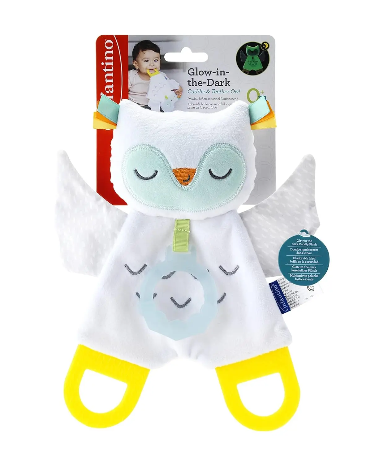 The Infantino Owl Teether is the perfect companion for your little one during the challenging teething phase. This adorable owl offers a multi-sensory experience, combining comfort, soothing relief, and playful engagement. Crafted with premium, must-touch textures, this teether invites exploration and tactile stimulation. Its perfectly sized design makes it easy for tiny hands to grasp and hold, promoting fine motor skill development. The BPA-free textured silicone teether provides a safe and effective way to massage sore gums and alleviate teething discomfort. More than just a teether, this owl is also a cuddly friend. Its soft and huggable design provides comfort and security, helping your baby feel calm and content. The gentle glow feature adds an extra layer of comfort, especially during nighttime soothing. This teether’s unique combination of textures, shapes, and gentle light makes it a versatile and engaging toy that will keep your baby entertained and happy. Whether your little one is exploring different textures, chewing on the soft silicone, or snuggling with their new owl friend, the Infantino Owl Teether offers a soothing and stimulating experience that supports healthy development and provides much-needed relief during teething. Give your baby the gift of comfort and play with this adorable and functional teether.