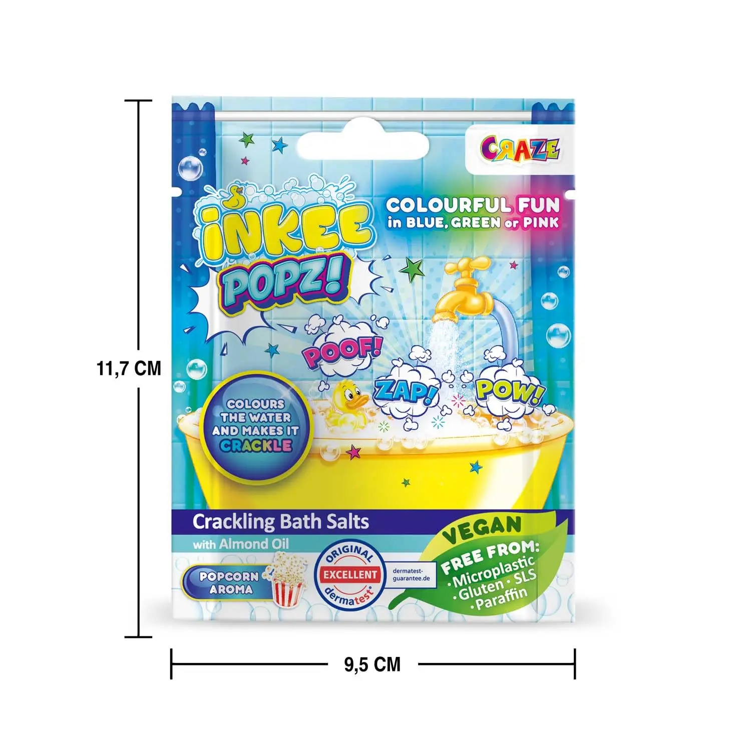 Each 15g bag is perfectly portioned for a single bath, making it easy to create a special SPA experience for your child. Enriched with almond oil and vitamin E, these bath salts nourish and protect delicate skin. Say goodbye to bath time battles and hello to a rainbow-filled, popcorn-scented oasis. INKEE Crackling Popcorn Bath Salts are the perfect way to make bath time a fun and relaxing treat, and they make a wonderful birthday or Christmas gift for babies and kids! Give the gift of a bubbly, aromatic, and crackling clean! Your little ones will eagerly anticipate their next rainbow bath time adventure.