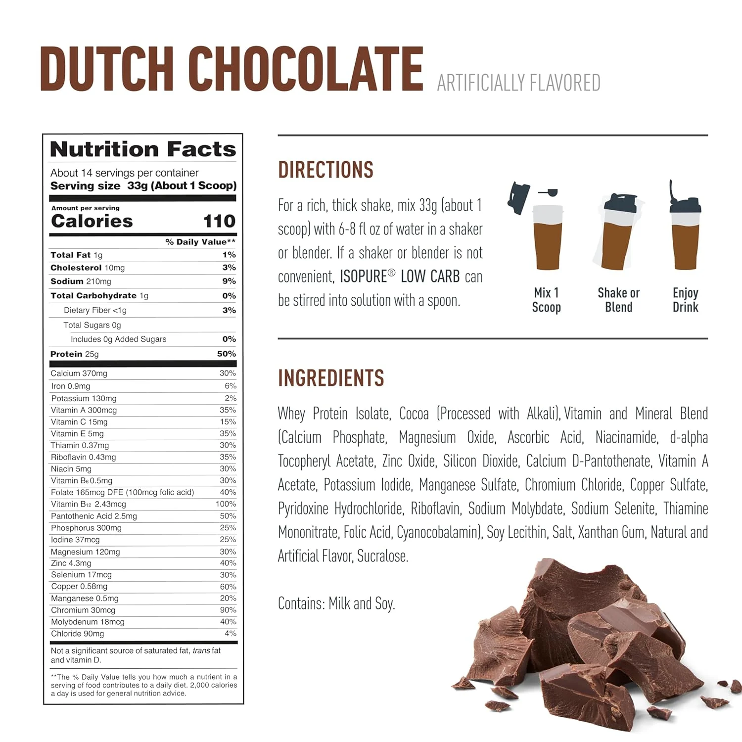 • 25 grams of whey protein isolate per serving