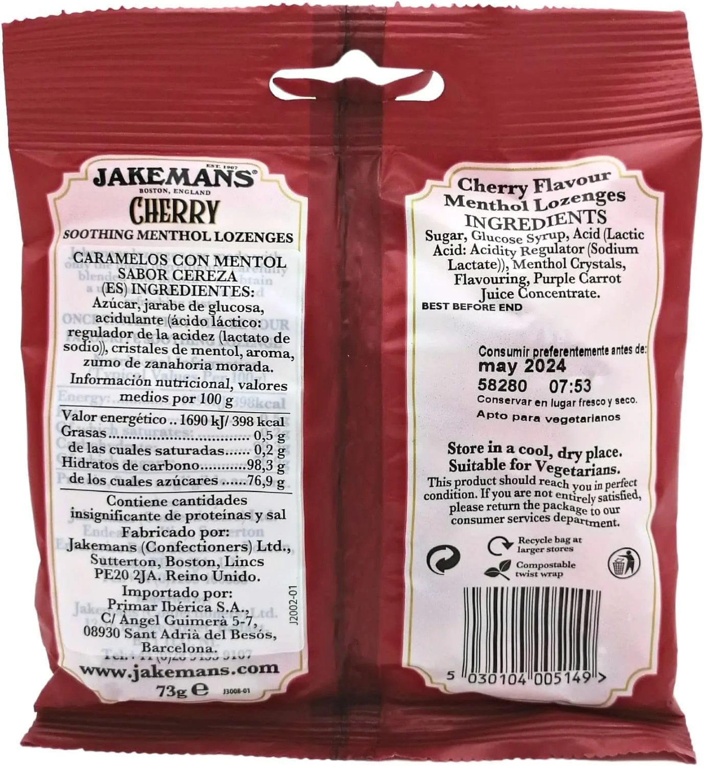 • Product: Jakemans Cherry Menthol Sweets