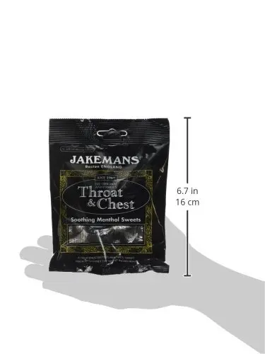 Jakemans Throat & Chest Lozenges, 100g, offer soothing relief from coughs and congestion. Made without harsh chemicals for gentle comfort. A trusted choice.