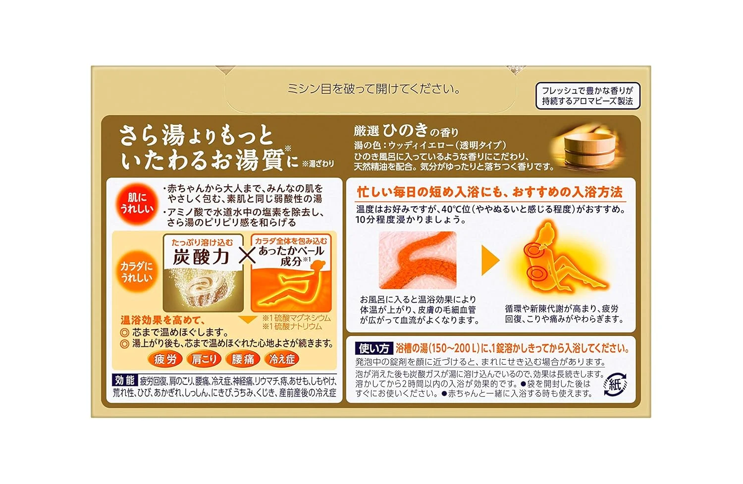 Transform your bath into a soothing Japanese Onsen experience with KAO BABU Japanese ONSEN Hot Spring Bath Salt tablets! These fizzy bath tablets recreate the feeling of soaking in a traditional Japanese hot spring, right in the comfort of your own home. Each tablet releases a refreshing Cypress scent, creating a relaxing and rejuvenating atmosphere. The “Carbonate force” technology enhances the warm bath effect, promoting healthy blood circulation and providing relief from fatigue, stiff neck, back pain, and poor circulation. Enjoy long-lasting warmth, even in lukewarm water, as these bath salts gently soften the water, making it friendly and gentle on your skin. Simply drop one tablet into your bath and immerse yourself in the luxurious scent and therapeutic benefits for a truly relaxing and revitalizing bath experience. Feel the stress melt away as you enjoy the authentic Onsen experience. These tablets offer a simple way to make your bath more relaxing and enjoyable. The effervescent action gently caresses your skin, stimulating circulation and promoting a sense of overall well-being. Regular use can help ease muscle tension and provide comfort after a long day. Escape the everyday and treat yourself to the tranquility of a Japanese Onsen with KAO BABU bath tablets.