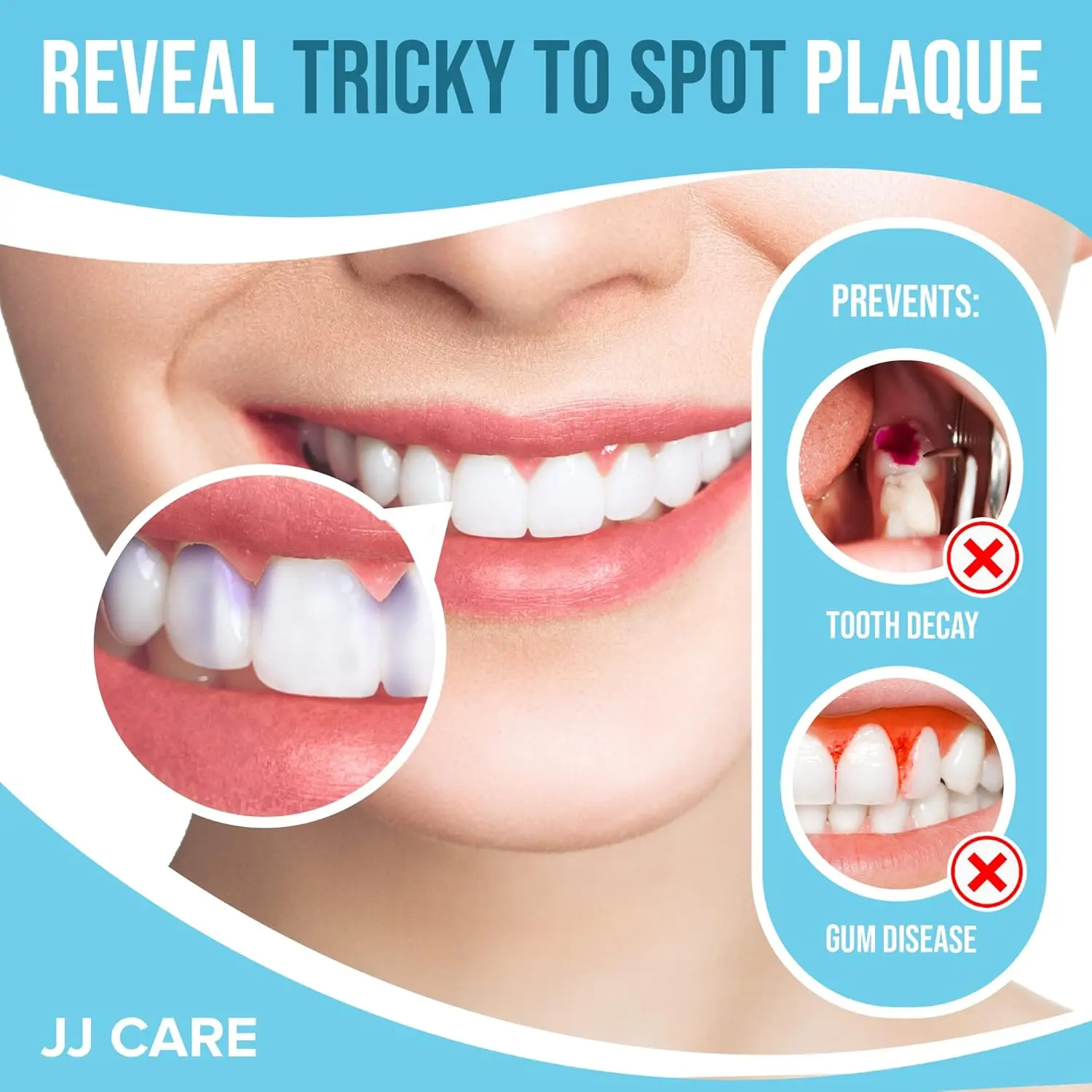 Improve your family’s oral hygiene with JJ Care Plaque Disclosing Tablets! These berry-flavored tablets are designed to make brushing fun and effective for both kids and adults. Our tablets contain safe, food-grade ingredients that highlight plaque buildup in a vibrant purple color, making it easy to see where extra brushing is needed. No more guessing if you’ve brushed thoroughly! The enjoyable berry flavor encourages kids to participate in the process, transforming brushing from a chore into a fun activity. Each pack contains 120 individually-sealed tablets, providing over three months’ supply for one person or over a month’s supply for a family of three. The individual packaging ensures freshness and makes these tablets perfect for travel, so you can maintain good oral hygiene habits on the go. JJ Care Plaque Disclosing Tablets help prevent plaque buildup, leading to healthier gums and teeth. By identifying problem areas early, you can improve your brushing technique and reduce the risk of cavities and other dental problems. Make JJ Care Plaque Disclosing Tablets a part of your daily routine and enjoy a brighter, healthier smile! The easy-to-use tablets are a great tool for teaching kids about proper oral hygiene and empowering them to take control of their dental health. Our safe and effective formula is gentle on teeth and gums, making it suitable for the whole family. Get your pack today and start brushing smarter, not harder! Experience the difference with JJ Care and achieve a cleaner, healthier mouth. Reveal hidden plaque easily and enjoy the peace of mind that comes with knowing you’re doing everything you can to protect your family’s smiles.