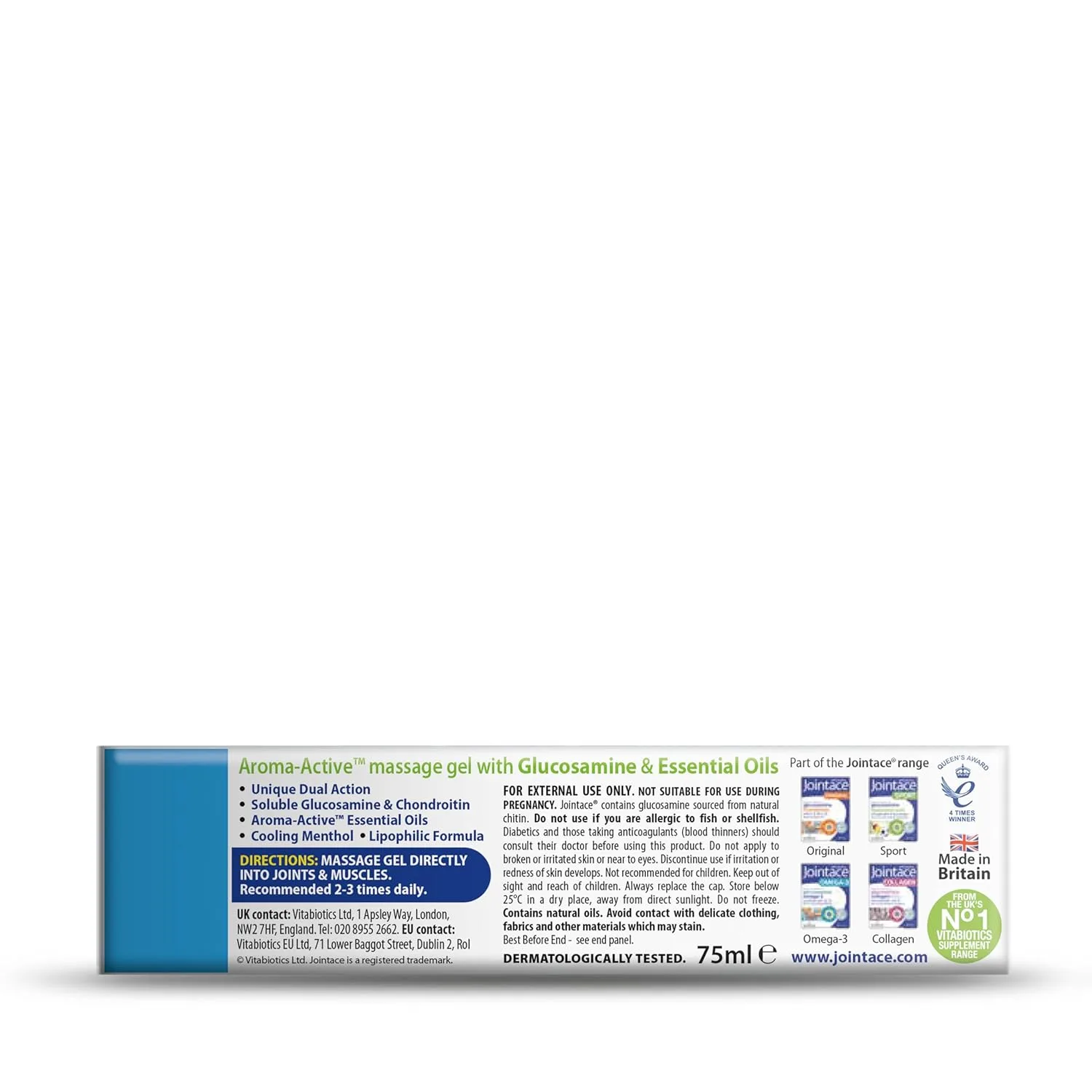 Soothe tired and achy muscles with Jointace Gel, a specially formulated blend designed for targeted relief. This unique gel combines the power of six aroma-therapeutic essential oils, carefully selected for their relaxing and revitalizing properties. Our formula goes beyond simple pain relief. It incorporates a special grade of lecithin to significantly enhance the absorption of the gel into your skin, ensuring that the beneficial ingredients reach the affected areas quickly and effectively. Experience the unique dual action of Jointace Gel, providing both soothing aromatherapy and targeted muscle support. The inclusion of absorption-tested, soluble Glucosamine and Chondroitin further contributes to the gel’s effectiveness in supporting joint health and easing muscle discomfort. Jointace Gel is your go-to solution for post-workout recovery, everyday aches, and stiffness.