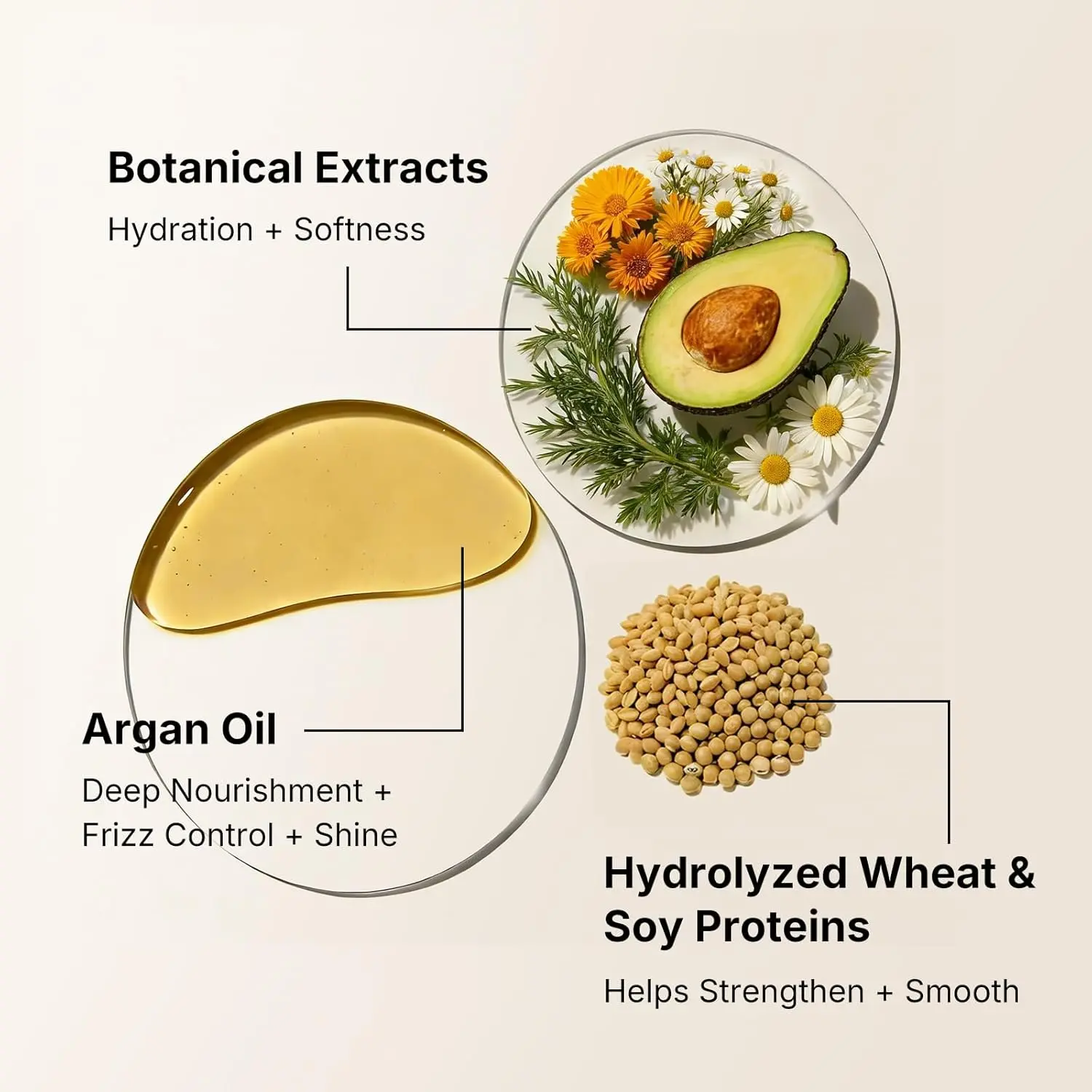 • Contains collagen, Moroccan argan oil, and natural herbs.