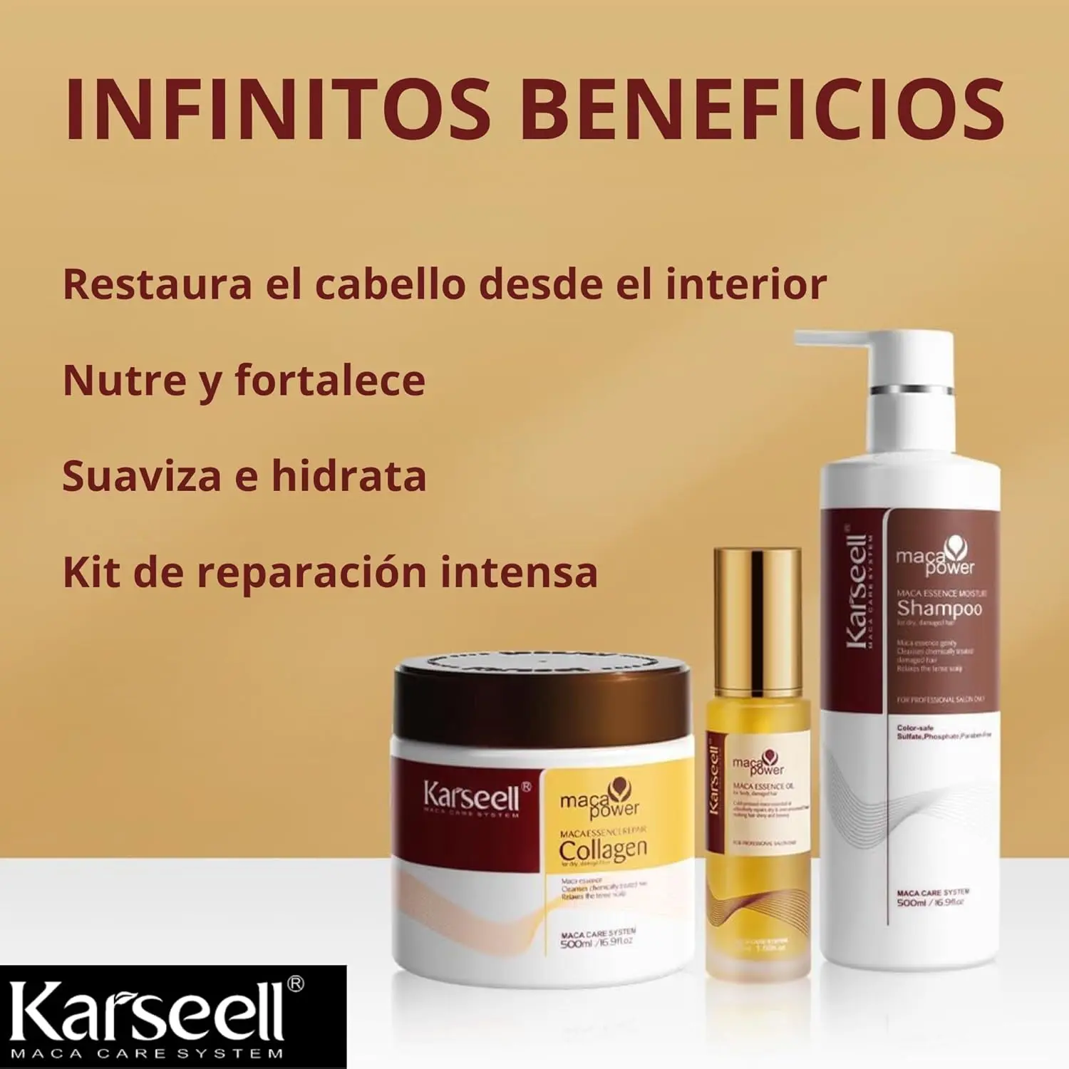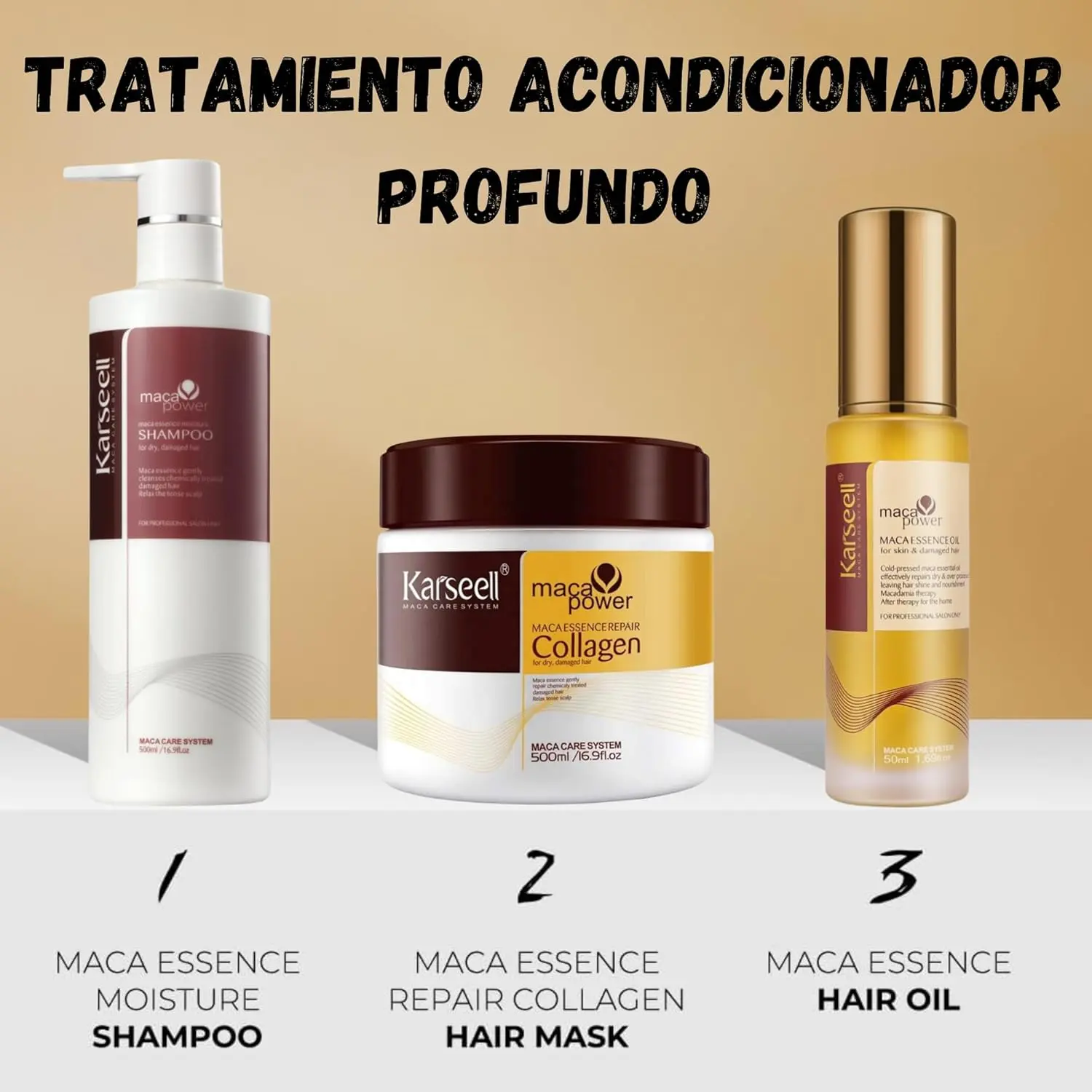 Revitalize your hair with the Karseell Maca Hair Repair Pack, a comprehensive system designed to restore and rejuvenate damaged hair. This potent combination of collagen, Moroccan argan oil, maca essence, and natural herbs works synergistically to combat the effects of external aggressors, leaving your hair radiant and healthy. Free from parabens and sulfates, this gentle yet effective formula is suitable for all hair types, including fine, thick, dyed, chemically treated, straight, and wavy hair. It’s especially beneficial for dry and damaged hair, providing intense hydration and repair. Indulge your senses with the captivating aroma that lingers in your hair long after use, leaving you feeling refreshed and confident. Experience the Karseell MACA CARE SYSTEM difference – high-quality products crafted from the finest ingredients. Contact us with any questions; we’re always happy to assist you in achieving your hair goals.