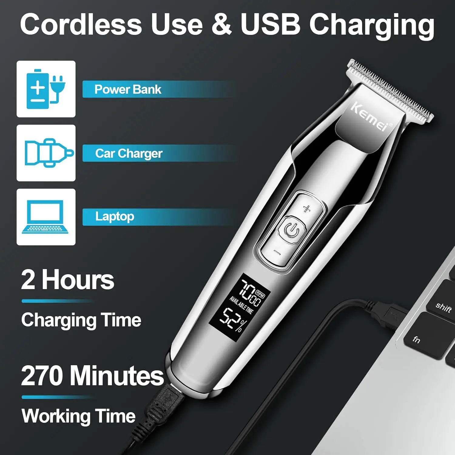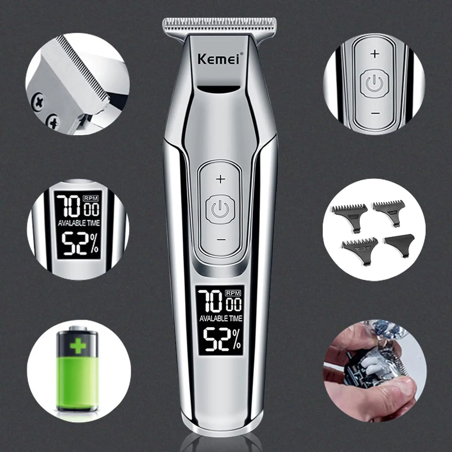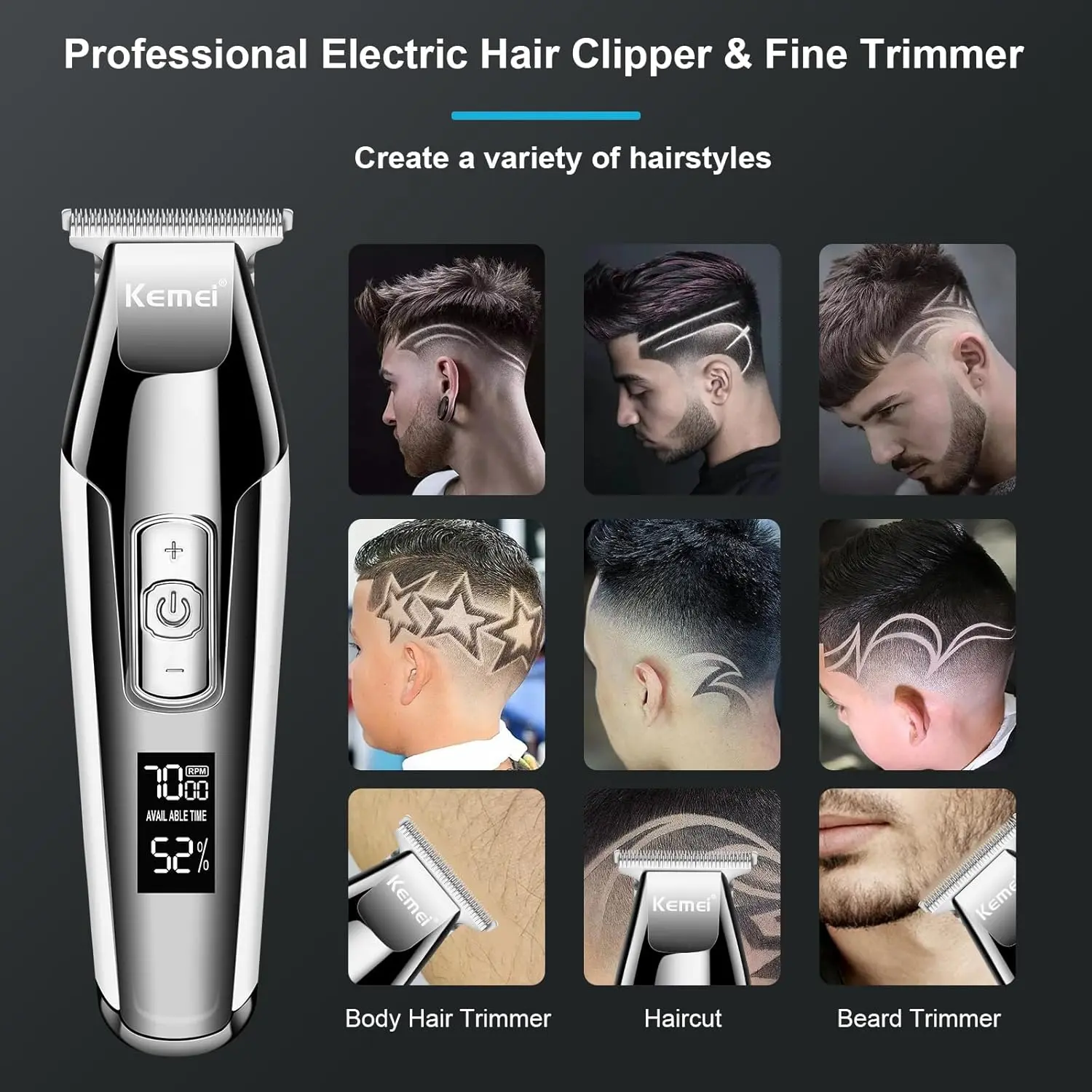 Experience effortless hair trimming with the KEMEI Hair Clipper Baldheaded Beard Trimmer. This clipper is designed for both professional barbers and home users, offering a seamless blend of power, precision, and comfort. The lightweight construction and ergonomic design ensure easy maneuvering, providing optimal control for achieving a variety of hairstyles and beard styles. Say goodbye to hand, wrist, and arm fatigue, even during the busiest days! Enjoy consistently excellent performance thanks to the always-sharp blades, which effortlessly glide through hair for a clean and even cut every time. Cleaning is a breeze, ensuring hygiene and longevity of the clipper. Built with durable materials, this clipper is made to withstand frequent use and provide long-lasting reliability. The powerful rotating electric machine delivers ample power for tackling even thick and coarse hair, providing a smooth and efficient trimming experience. Whether you’re creating a bald fade, trimming a beard, or maintaining a sharp hairstyle, this clipper is your go-to tool for achieving professional-quality results in the comfort of your own home or in a busy barbershop setting. Its combination of power, durability, and ease of use makes it an excellent choice for anyone seeking a reliable and versatile hair trimming solution. The KEMEI Hair Clipper is designed to exceed expectations by proving a clean cut with every use.
