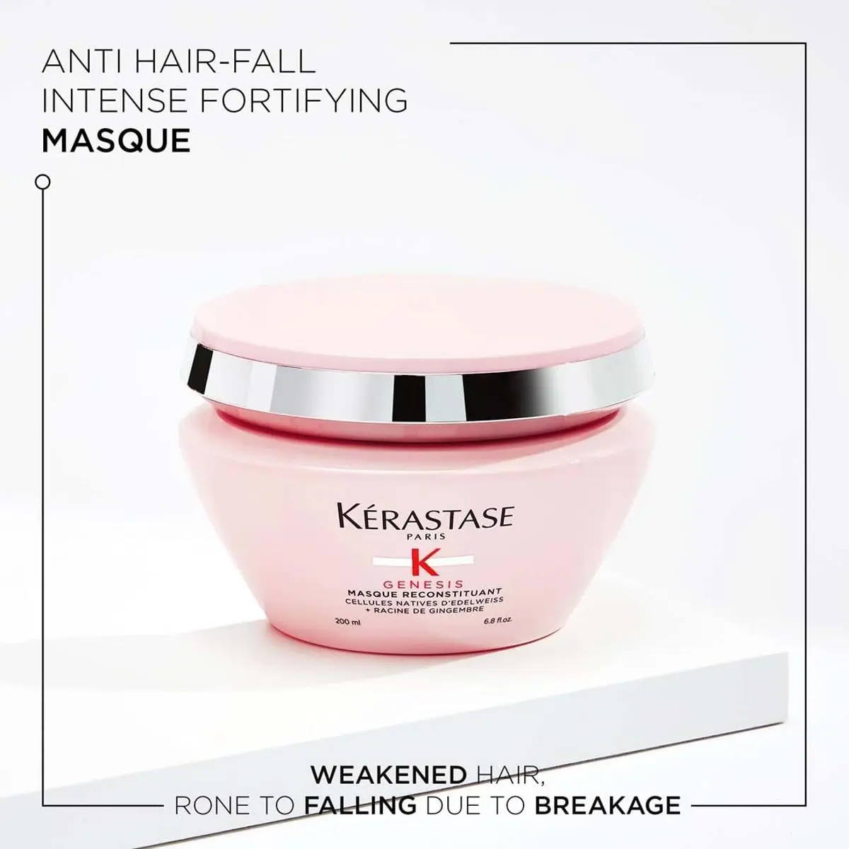 Combat hair fall due to breakage with the Kérastase Genesis Hair Fall Mask! This intensely nourishing mask detangles and reinforces hair, reducing the risk of hair fall and promoting stronger, healthier locks. Enriched with a powerful combination of edelweiss native cells and ginger root, this mask provides deep replenishment, targeting and fortifying damaged zones within the hair fiber. Experience easier combing, restored softness, and intense nourishment with every use. The Kérastase Genesis mask leaves hair feeling intensely fortified, noticeably softer, and radiantly shiny. Transform weak, brittle hair into resilient, beautiful strands. This revitalizing mask is a vital step in your hair care routine to combat hair fall and promote lasting hair health, adding strength and shine. Rediscover the beauty of healthy, strong, and vibrant hair with the transformative power of Kérastase Genesis.