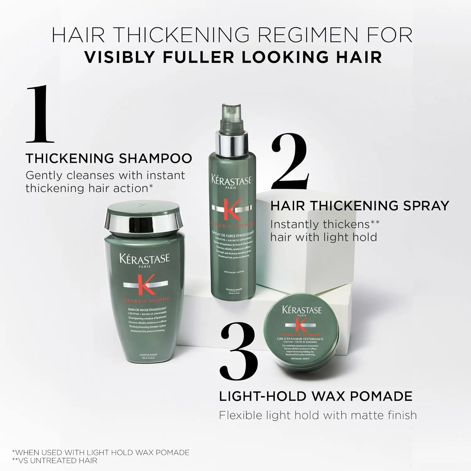 Kérastase Genesis Homme Thickening Spray is suitable for all hair types, especially those experiencing thinning or weakening. Whether you have fine, straight hair or thick, curly hair, this product will help you achieve a fuller, more voluminous look. Say goodbye to limp, lifeless hair and hello to a confident, head-turning style. Experience the Kérastase difference and unlock the potential of your hair today!