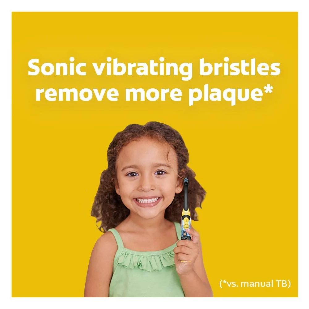 Get your little one excited about brushing with the Spiderman Power Clean Kids Battery Toothbrush! This fun and engaging toothbrush makes oral hygiene a breeze. Designed with a small, oscillating head, it gently and effectively cleans your child’s small teeth, removing plaque and promoting healthy gums. The attractive Spiderman design encourages kids to develop good brushing habits early on. The toothbrush is powered by two replaceable AAA Alkaline batteries, ensuring long-lasting performance. While the head is non-replaceable, it’s recommended to change the toothbrush after the head becomes loose due to damage. Always supervise children while brushing and ensure they follow the instructions provided on the packaging. Not suitable for children under 3 years of age. Make brushing a super adventure with Spiderman! Make brushing a super adventure with Spiderman! This toothbrush helps instill good dental care habits from a young age. The rotating head gets into those hard-to-reach places to clear all the pesky food. It is important to start healthy habbits early, let Spiderman help!