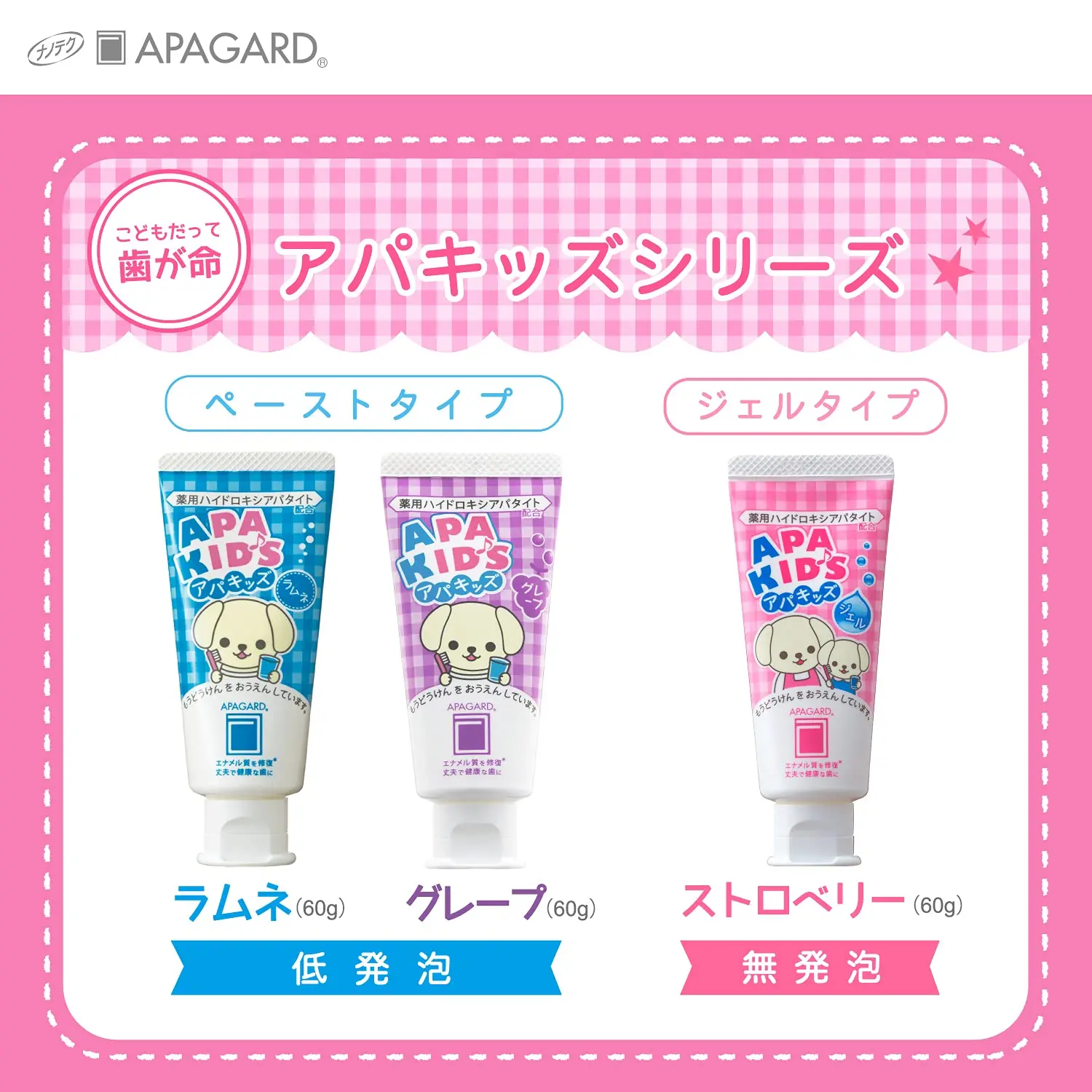 Fluoride-free kids toothpaste gel with delicious strawberry flavor. Contains xylitol and Medical Hydroxyapatite (mHAP) for enamel protection. Made in Japan.