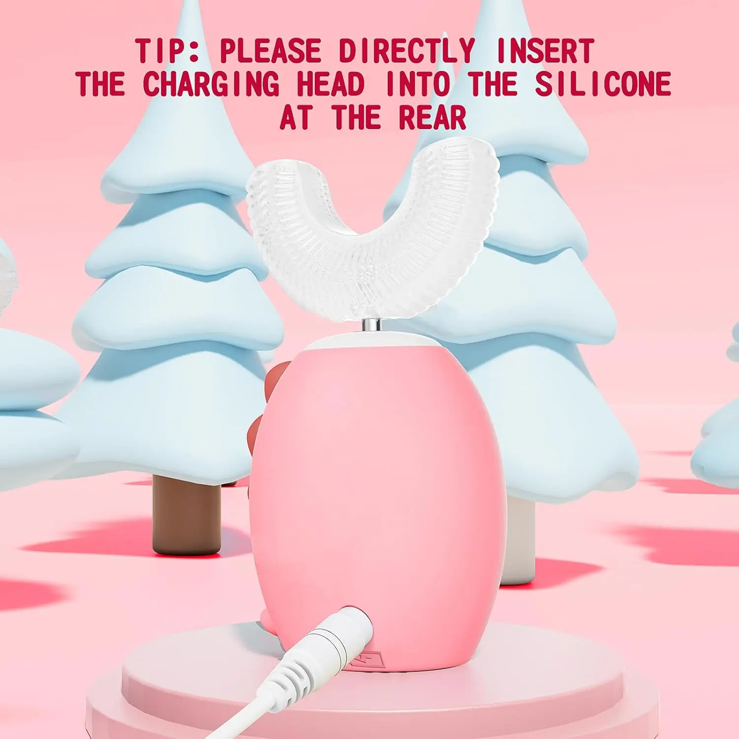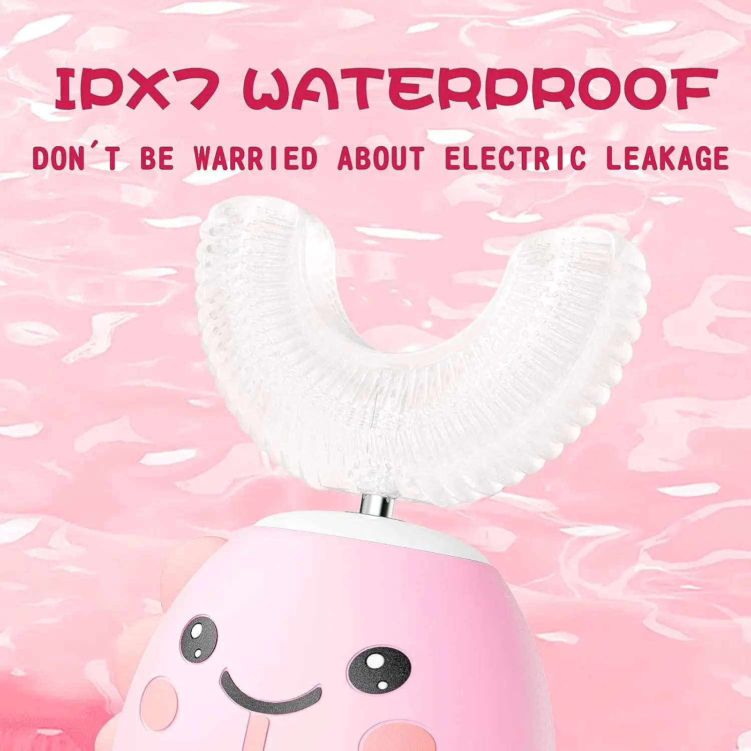 Introduce your child to a fun and effective way to brush with our Kids U Shaped Electric Toothbrush! This innovative toothbrush features a unique U-shaped design made with food-grade soft silicone, gentle on delicate gums and sensitive teeth. It comes with two U-shaped brush heads and two soft brush heads, offering versatile cleaning options for your child’s needs. The U-shaped brush head provides a 360-degree cleaning experience, ensuring every tooth surface is reached for a thorough and comfortable brushing session. The soft bristles are gentle yet effective at removing plaque and debris, promoting healthy gums and teeth.