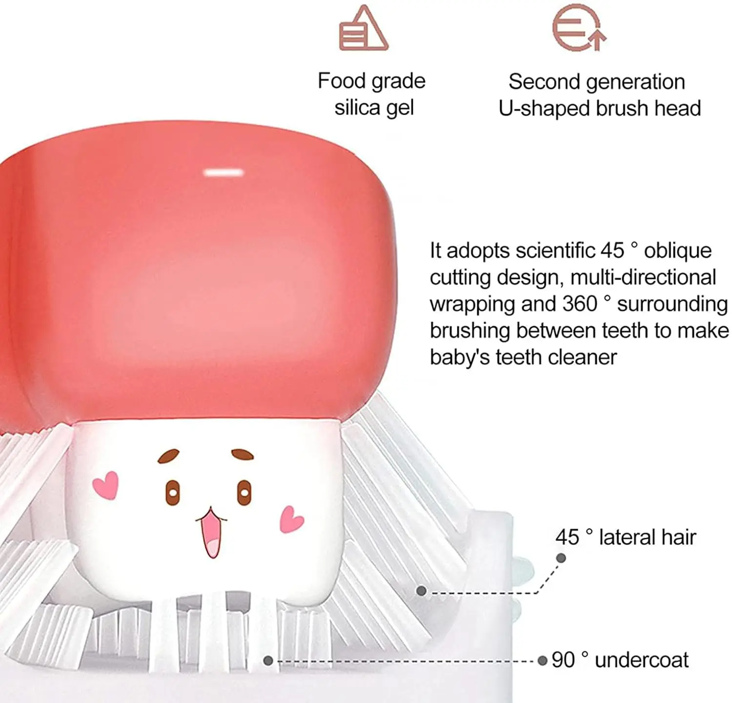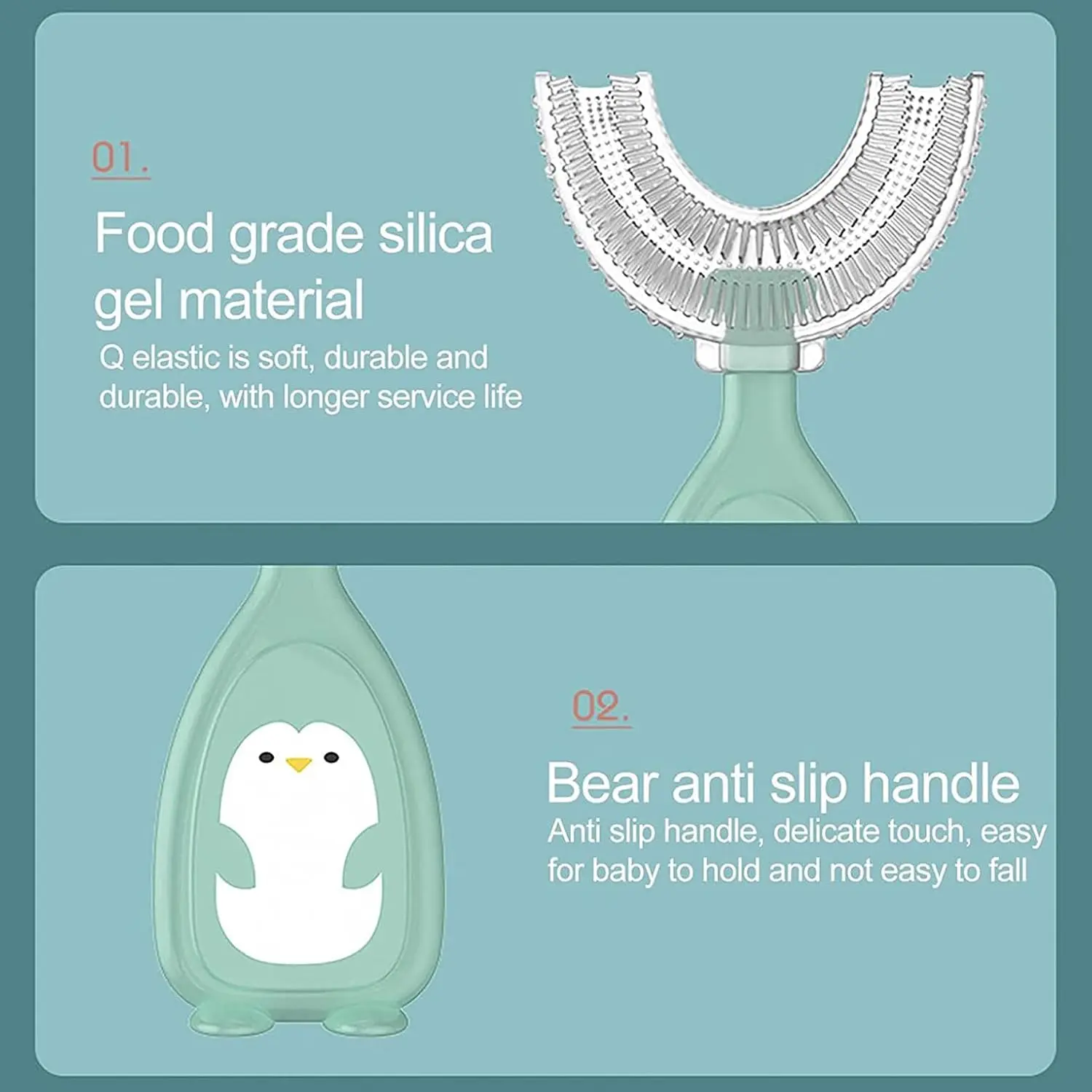 Our U-shaped design hugs the teeth, providing a comprehensive 360° clean that traditional toothbrushes simply can’t match. This design encourages babies and toddlers to accept brushing more readily, turning a chore into a playful activity. The soft silicone bristles are gentle on developing teeth and gums, making it ideal for daily use. With this U-shaped toothbrush, you can ensure your child’s oral health is prioritized from an early age. The easy-to-grip handle is designed for small hands, promoting independent brushing. Let your child discover the joy of brushing with a toothbrush that is both effective and enjoyable!