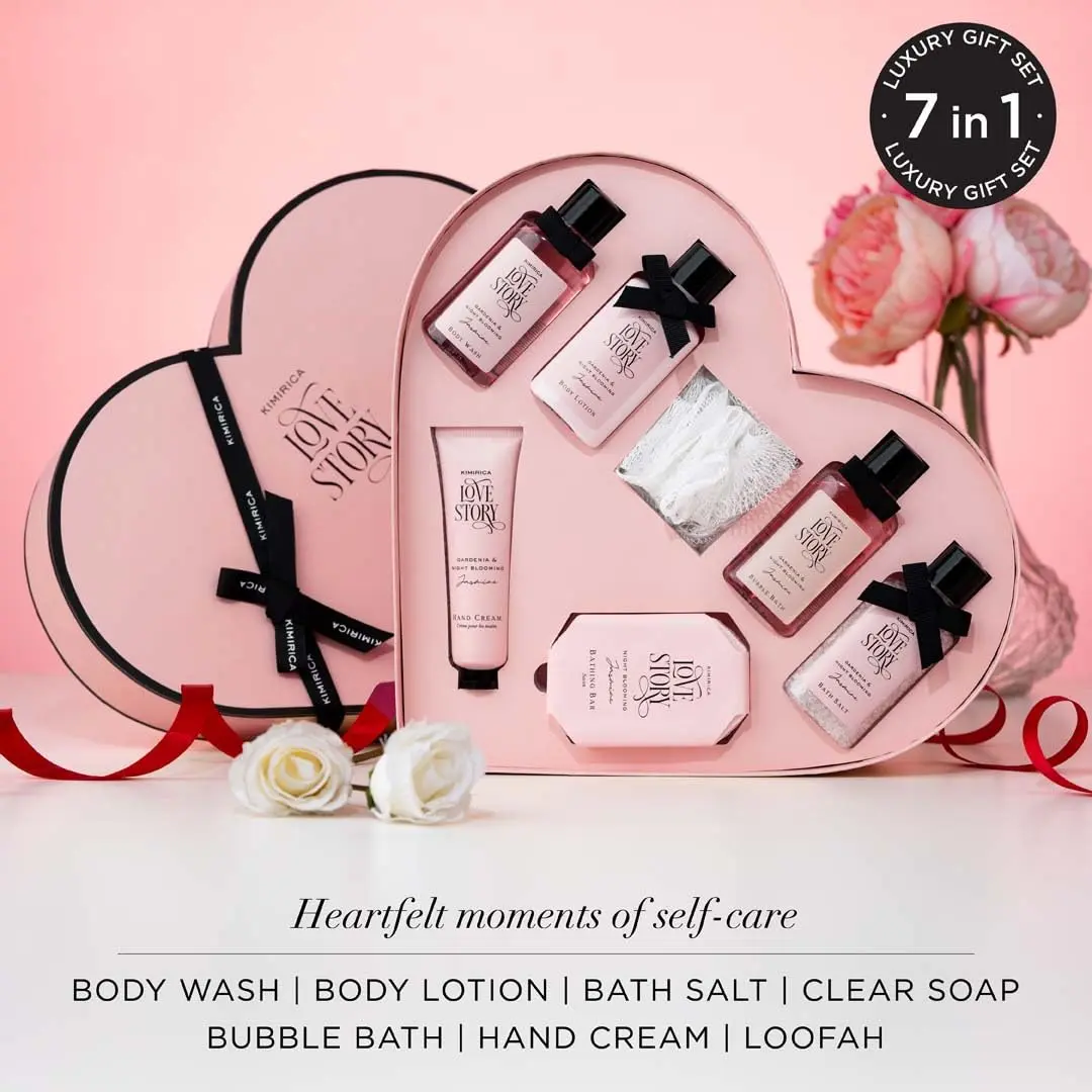 • Included Items: Bubble Bath, Body Wash, Body Lotion, Bath Salt, Hand Cream, Bathing Bar, Loofah