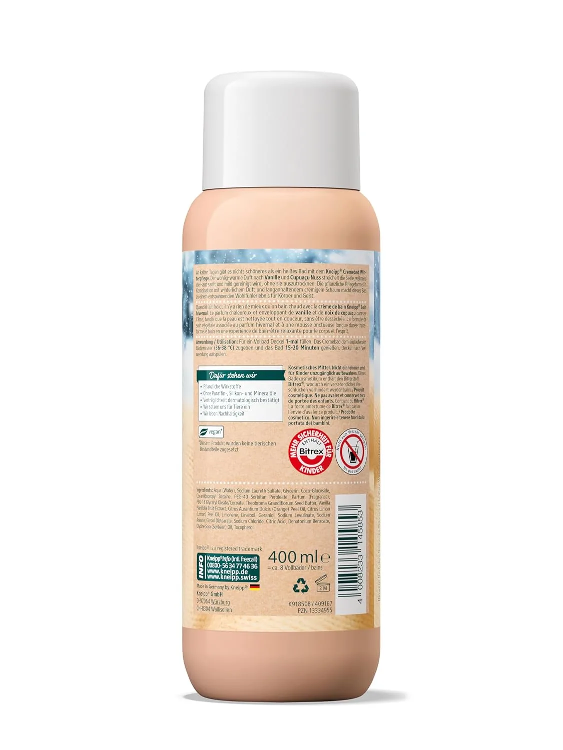 This special winter edition is infused with valuable oils, adding an extra layer of protection against the harsh winter elements. These oils work to lock in moisture and prevent dryness, keeping your skin feeling healthy and revitalized. The pleasantly warm care scent, infused with natural essential oils, creates a truly relaxing and immersive bathing experience. Let the comforting aroma envelop your senses as you soak away the stresses of the day. Kneipp Winter Cream Bath is more than just a bath product; it’s a moment of self-care, a chance to reconnect with your body and indulge in a little bit of luxury. Transform your ordinary bath into a spa-like retreat with this nourishing and fragrant cream bath. Perfect for dry, sensitive skin, this cream bath will leave you feeling refreshed, rejuvenated, and ready to face the winter season.