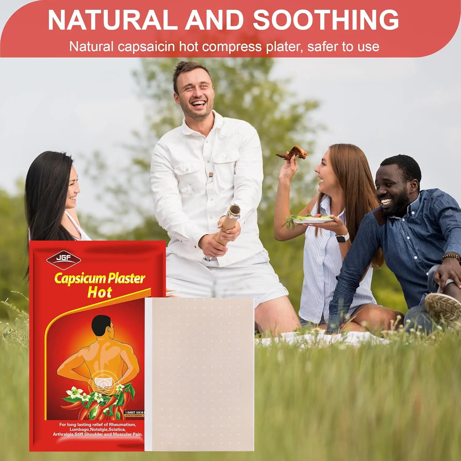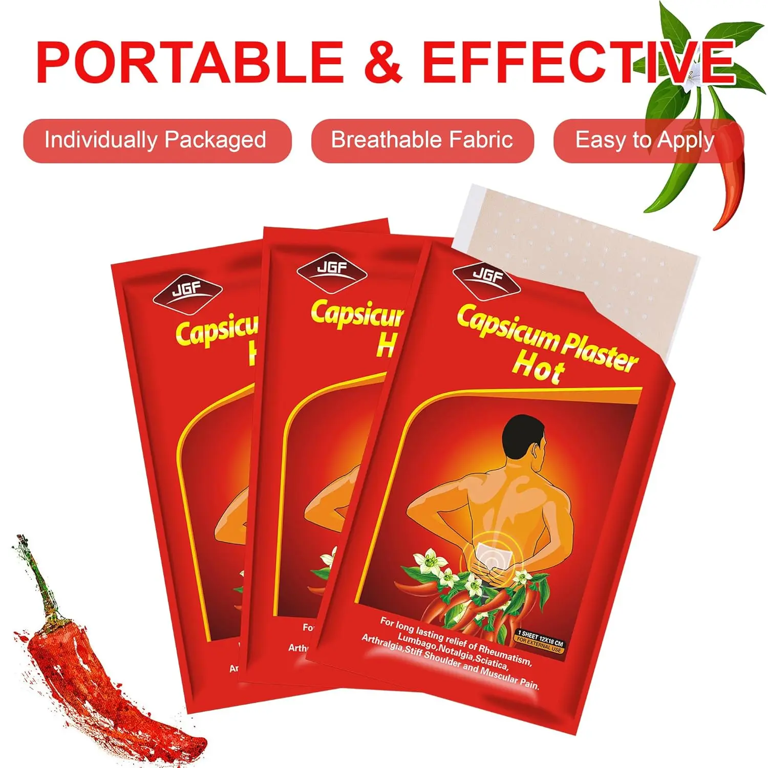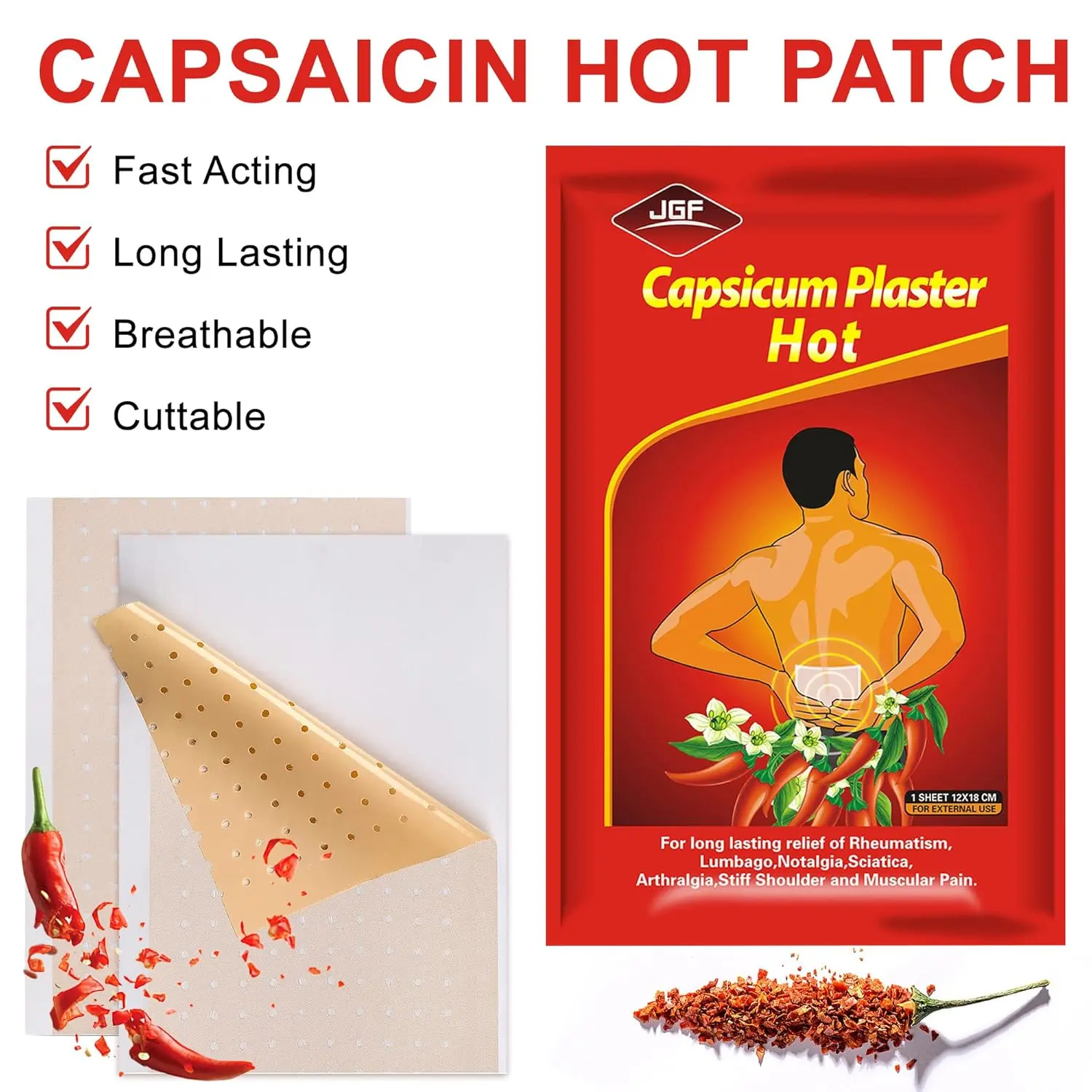 Experience soothing relief with KONGDY Capsaicin Patches, your solution for targeted pain management. These Hot Capsicum Patches are designed to provide long-lasting comfort wherever you need it most. Each patch is generously sized at 4.72 x 7.1 inches, offering ample coverage for various body areas. What sets our patches apart is their innovative design featuring 70 vents. These vents promote exceptional air and water permeability, preventing the discomfort often associated with prolonged patch use, such as sweating, itching, and allergic reactions. The main ingredients work together to deliver a warming sensation that helps to alleviate aches and pains. KONGDY patches are easy to use and can be cut to your desired size for a custom fit. Remember to adhere to the recommended usage: adults over 16 can use the patch for 3-4 hours, up to 3 times a day, for a maximum of 7 days. Not recommended for children under 16.