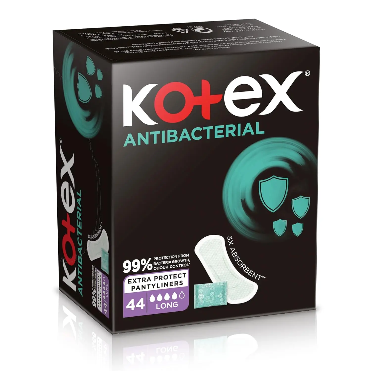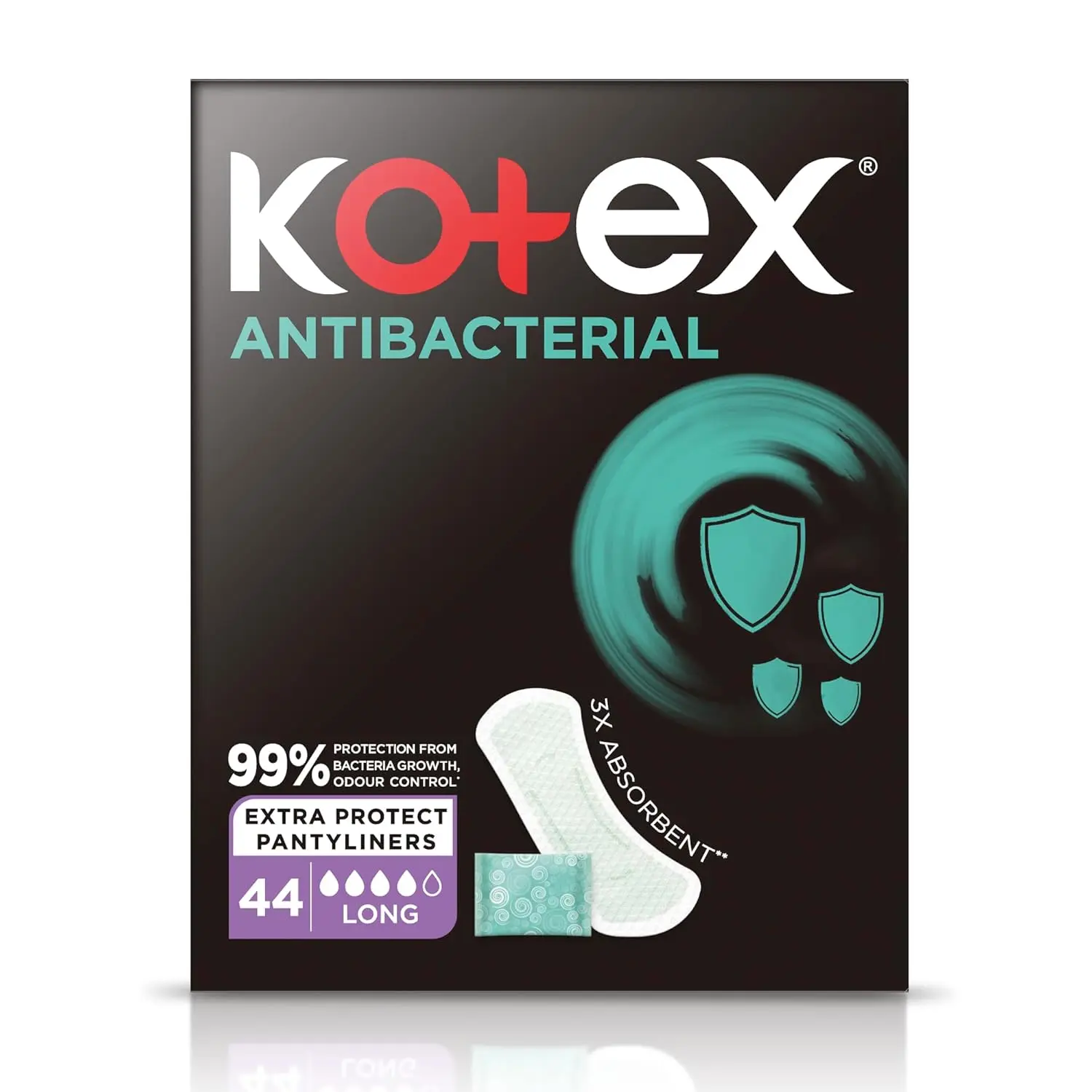 Experience superior hygiene and all-day freshness with Kotex Antibacterial Panty Liners Long. These panty liners offer 99% protection against bacteria, ensuring ultimate odor control and a confident feeling throughout your day. Designed with double the absorption capacity of regular liners, they effectively handle light leaks, vaginal discharge, and those pre- and post-period moments when your flow is minimal. The breathable design allows air to circulate, promoting comfort and preventing moisture buildup. These liners are free from harsh chemicals like fragrances and print ink, making them gentle and safe for sensitive skin. Individually wrapped for convenience and hygiene, Kotex Antibacterial Long Panty Liners are perfect for on-the-go use. Stay protected and fresh with Kotex! Discover our full range of sanitary pads and daily panty liners, tailored to meet all your feminine hygiene needs. Choose Kotex for reliable protection and comfort you can trust.