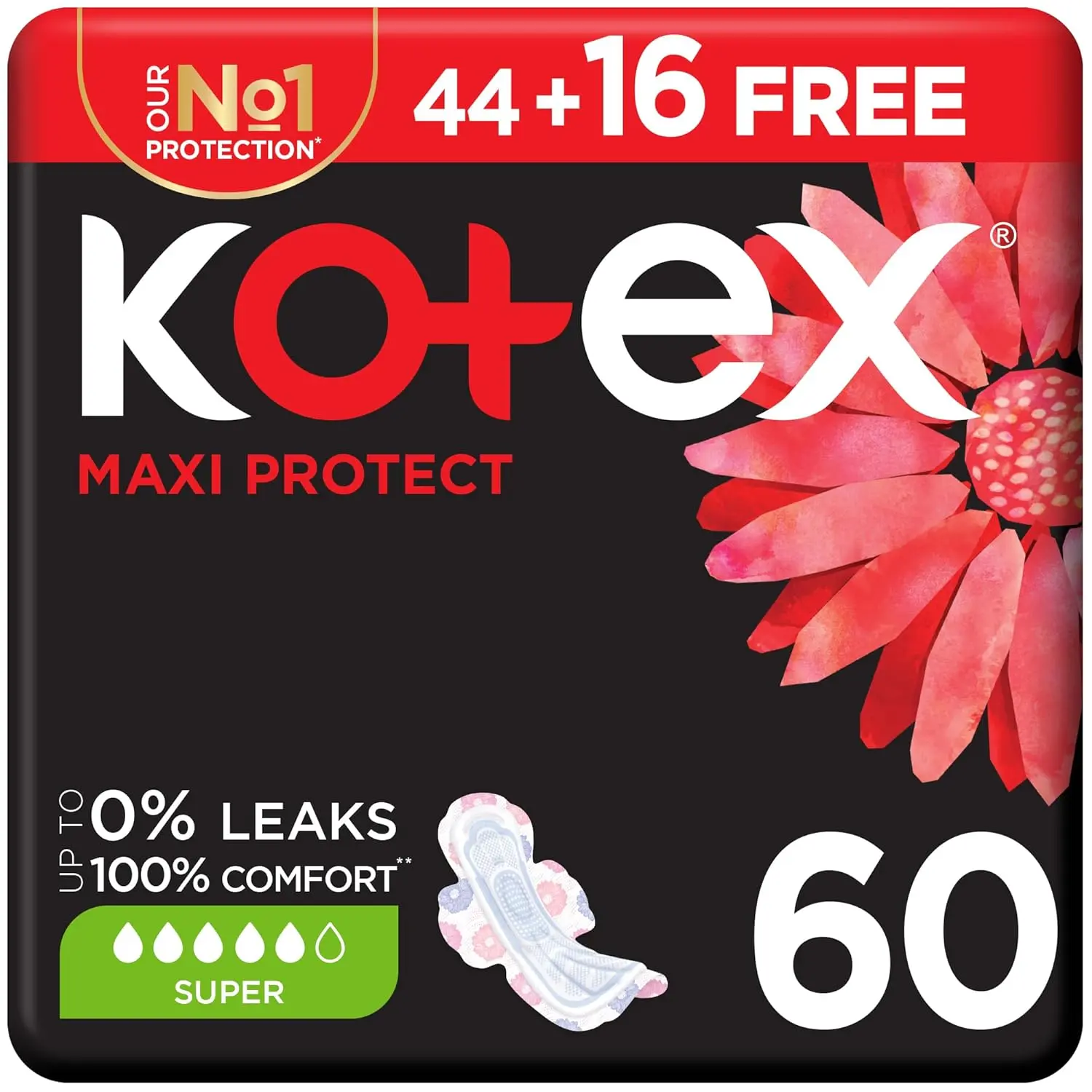 Kotex Maxi Thick Pads with Wings – 60 Super Pads