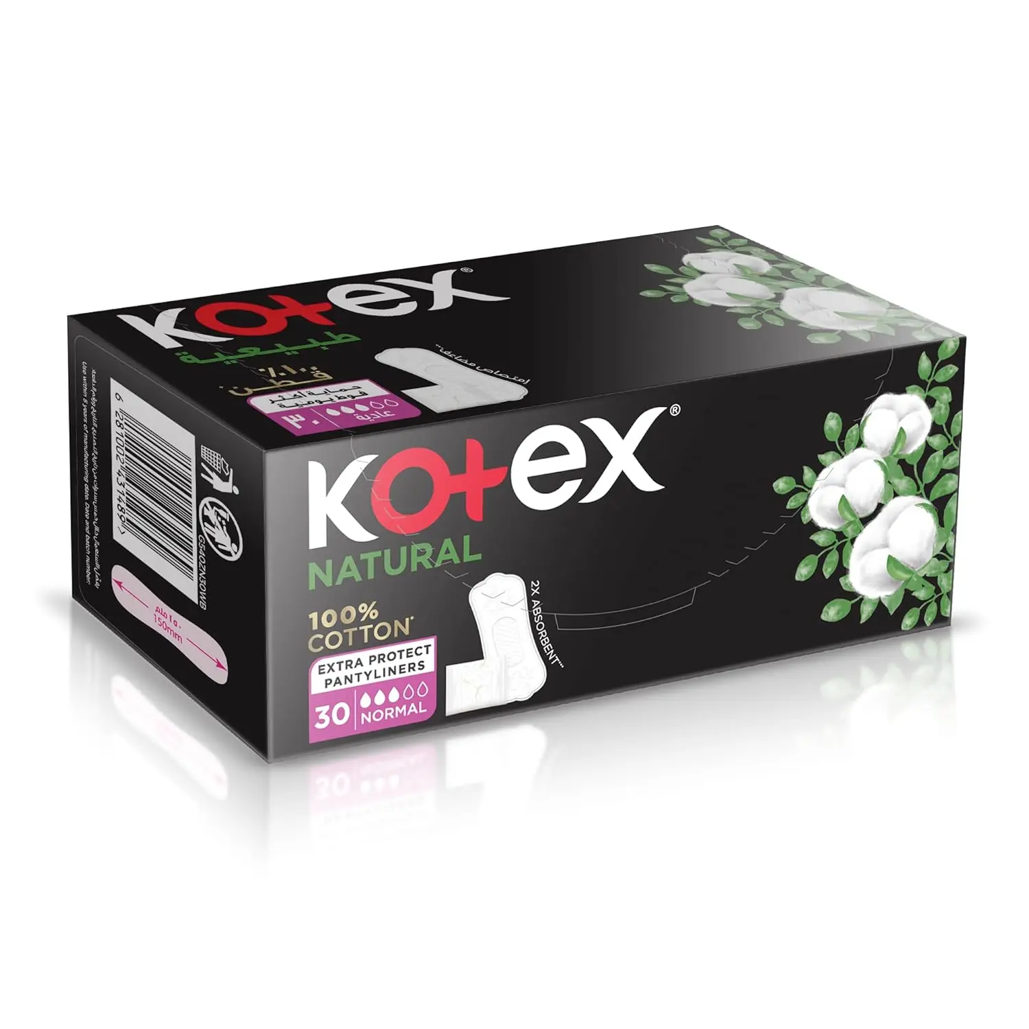 Experience all-day, everyday comfort with Kotex Natural Cotton Panty Liners. Designed for ultimate softness and gentle protection, these liners are perfect for managing vaginal discharge, urine leaks, and unexpected periods. Enjoy a fresh, clean feeling every day with these liners that keep your panties protected. Made with 100% pure cotton, they offer a natural and soft feel against your skin, ensuring a gentle and comfortable experience. These panty liners are dermatologically tested and hypoallergenic, making them a skin-friendly choice for intimate care. The dual absorption power provides maximum dryness and long-lasting freshness, keeping you confident throughout the day. For added convenience and hygiene, each liner is individually wrapped, making them easy to carry and use wherever you go. Explore the full range of Kotex sanitary pads and panty liners to find the perfect fit for your feminine needs. Choose Kotex Natural Cotton Daily Panty Liners for a comfortable, reliable, and discreet solution.