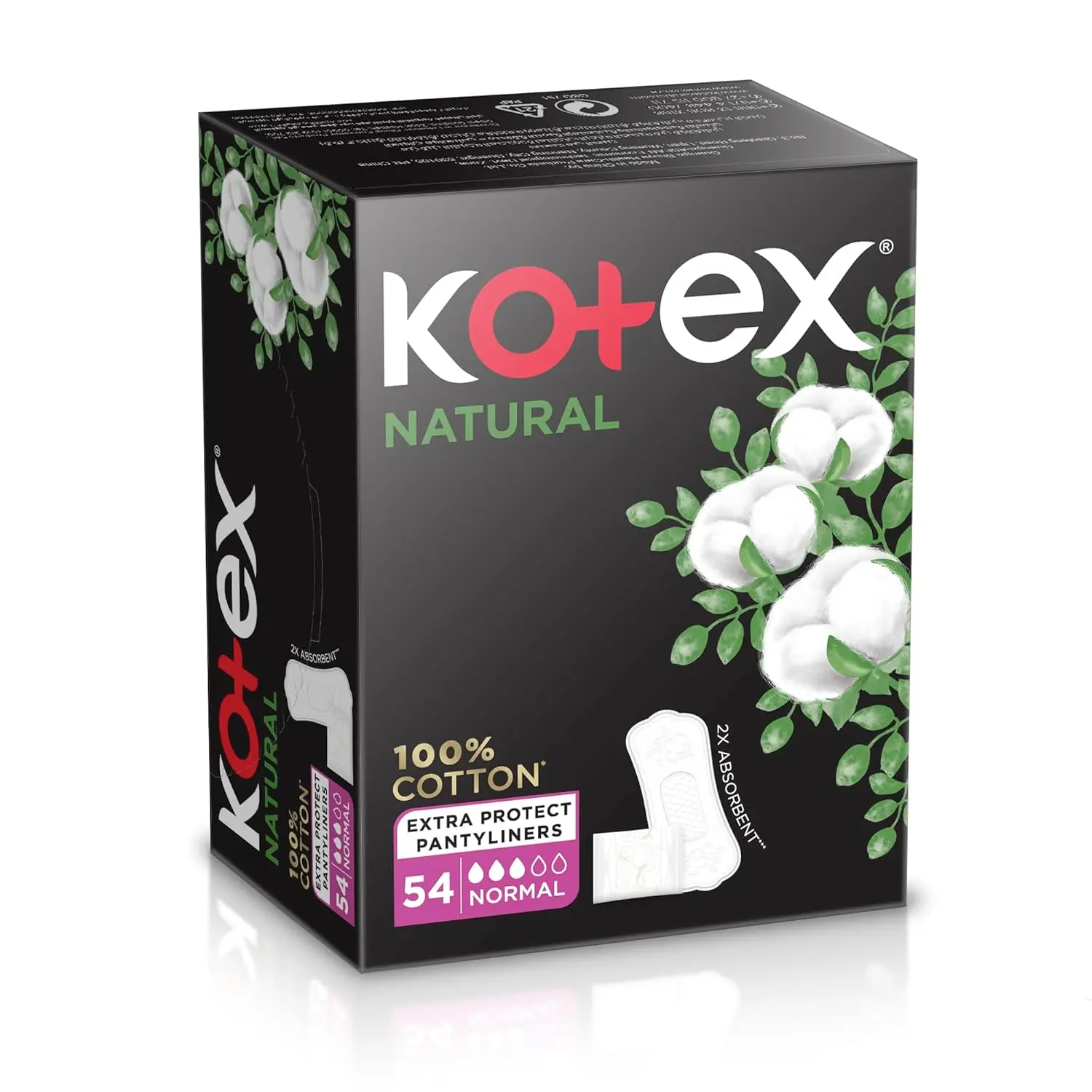 Experience all-day comfort and gentle protection with Kotex Natural Cotton Panty Liners. Designed for daily wear, these liners offer ultimate softness and safeguard against vaginal discharge, urine leaks, and unexpected periods. Made with 100% pure cotton, they provide a natural and fresh feel against your skin, ensuring a gentle experience every day. Dermatologically tested and hypoallergenic, these liners are a skin-friendly choice for intimate care. The dual absorption power maximizes dryness, keeping you feeling fresh and your panties clean all day long. For added convenience and hygiene, each liner is individually folded and wrapped, making them perfect for on-the-go use. Discover the comfort and confidence that Kotex Natural Cotton Panty Liners bring to your daily routine. Also, explore our full range of Kotex sanitary pads in various sizes and daily panty liners, all designed to meet your feminine needs.