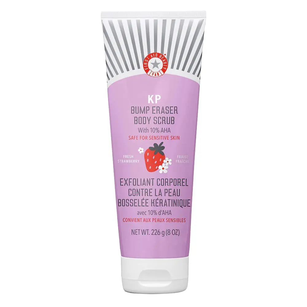 Experience the transformative power of our KP Bump Eraser Body Scrub and say goodbye to rough, bumpy skin. Remember to protect your skin from the sun while using this product and for a week afterward, as the Glycolic and Lactic Acids may increase your skin’s sensitivity to sunburn. Use sunscreen, wear protective clothing, and limit sun exposure for optimal results.