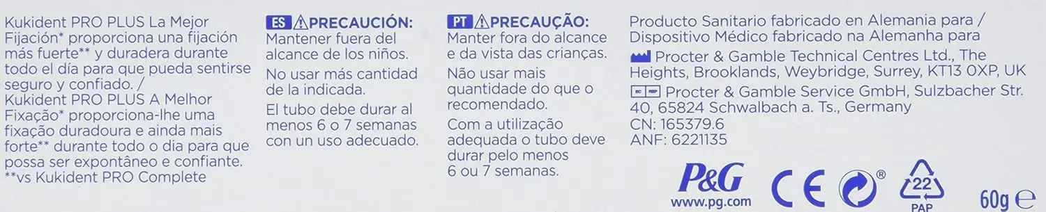 Experience unwavering confidence and all-day comfort with Kukident Pro Plus Denture Adhesive. This 60g tube of powerful adhesive provides a secure and long-lasting hold, keeping your dentures firmly in place. Kukident Pro Plus offers superior fixation, maintaining up to 88% of its holding power even after a full day of wear. Enjoy the freedom to eat, speak, and laugh without worry. This advanced formula creates a comfortable cushion between your gums and dentures, preventing irritation and providing a precise fit. The innovative seal technology prevents food particles from getting trapped underneath your dentures, ensuring optimal hygiene and preventing discomfort. Kukident Pro Plus is your trusted partner for denture care, providing the security, comfort, and confidence you deserve. Say goodbye to slipping and sliding dentures and hello to a confident smile. Kukident Pro Plus is easy to apply and remove, leaving no residue behind. Its unique formula is gentle on gums and provides a natural, comfortable feel.