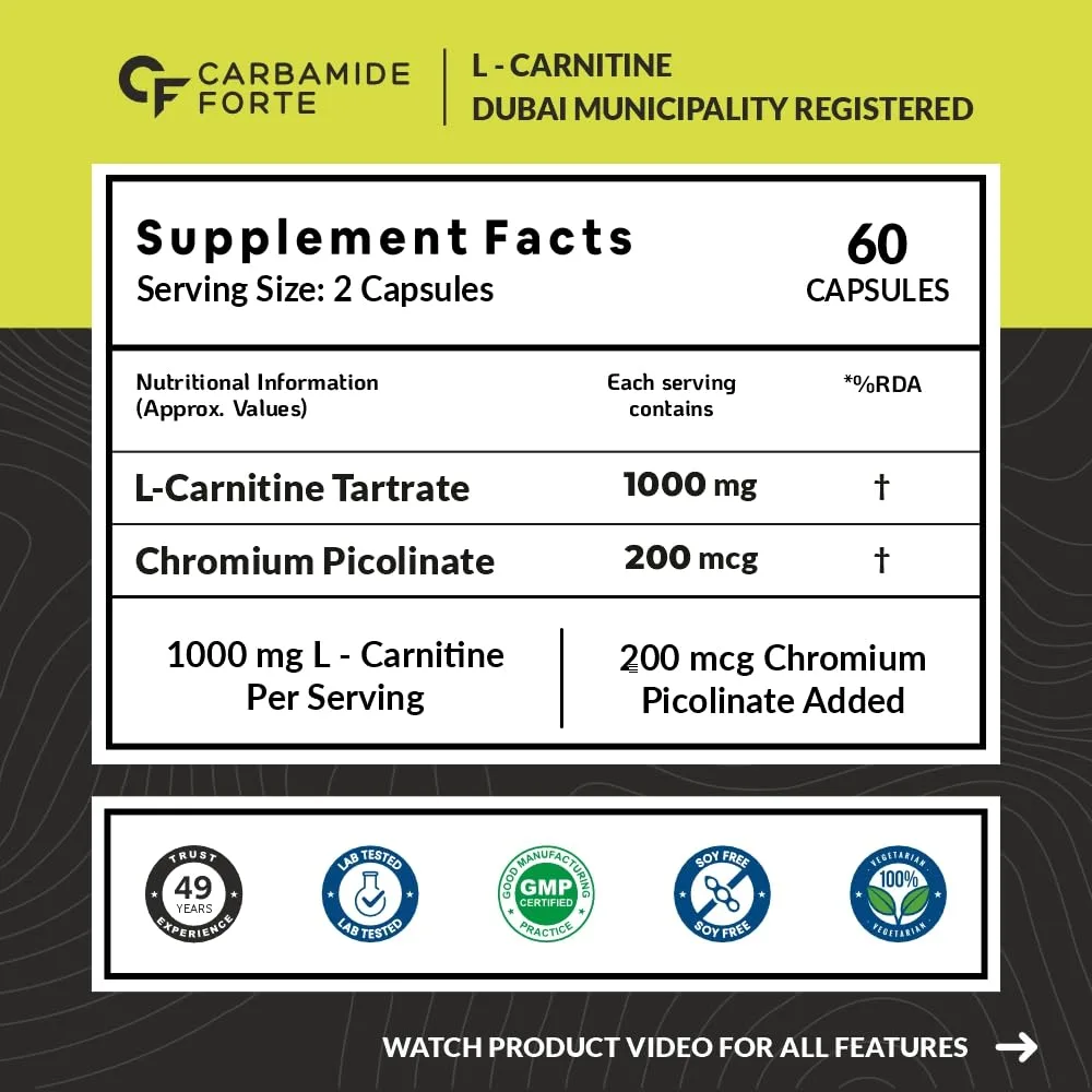 Fuel your fitness journey with our L-Carnitine 1000mg supplement! Designed to boost athletic performance and stamina, this powerful formula helps you push harder and achieve your goals. Experience enhanced energy release throughout your workout as stored body fat is converted into fuel. Our L-Carnitine supports muscle growth, promotes faster recovery, and reduces muscle soreness. It also sharpens mental focus and alertness, making it an ideal pre-workout supplement. Plus, it’s 100% vegetarian, pure, and free from GMOs, allergens, stearates, parabens, and banned substances. Unlock your full potential with our L-Carnitine and take your workouts to the next level! Unlike other I carnitine 1000 mg / l carnitine Tartrate / l carnitine 1000 mg, Our L Carnitine capsules 1000mg are potent that help convert stored body fat to fuel by transporting stored fat to the muscle where it can be burned as energy. This l carnitine supplement helps muscle growth & helps you get lean faster. As a Pre Workout Supplement, I carnitine tartrate Capsules 1000mg has the visible ability to increase mental alertness, promote high energy & make your brain work faster. As a Post Workout Supplement l carnitine 1000mg helps in reduction of muscle damage & helps in faster muscle recovery. L-carnitine l-tartrate also helps in reduction of muscle soreness & improved muscle health.
