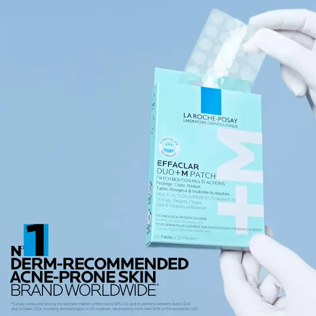 Target blemishes effectively and discreetly with La Roche-Posay Effaclar Multi-Target Blemish Patches. These invisible patches work in just 3 hours to visibly absorb gunk and reduce the appearance of post-acne marks. The hydrocolloid patch, with its 420-micron thickness, creates a strong barrier, optimizing the absorption of impurities and excess oil. Designed for both day and night wear, these patches are virtually invisible, allowing you to wear them confidently under makeup while shielding blemishes from external irritants. Dermatologist-tested and allergy-tested, these patches are safe and suitable for acne-prone skin. They offer a comprehensive approach to blemish treatment by preventing picking and protecting against external aggressors, targeting visible size and redness, and effectively absorbing gunk and excess oil, making them ideal for oily skin. In consumer tests, 94% of users agreed their spot looked flattened*, 96% agreed it protects and makes the spot less visible*, and 96% agreed it prevents the spot from worsening*. Experience clearer, healthier-looking skin with La Roche-Posay’s innovative blemish patches. Get rapid relief and promote faster healing with these easy-to-use, virtually undetectable patches that fit seamlessly into your skincare routine. *Self assessment in a consumer test.