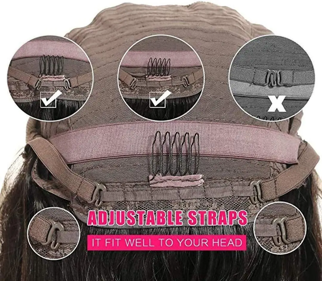 Our 130% Density Straight Bob Wigs Human Hair are meticulously crafted with pre-plucked baby hair around the perimeter, offering a very natural hairline that rivals closure wigs. This wig is suitable for any occasion, whether it’s a casual day out or a special event. The adjustable cap size, designed to fit medium sizes (22-22.5 inches), ensures a secure and comfortable fit for most head circumferences. Two straps allow you to customize the size of the hair cap, while four clips provide additional security to prevent the wig from falling off.