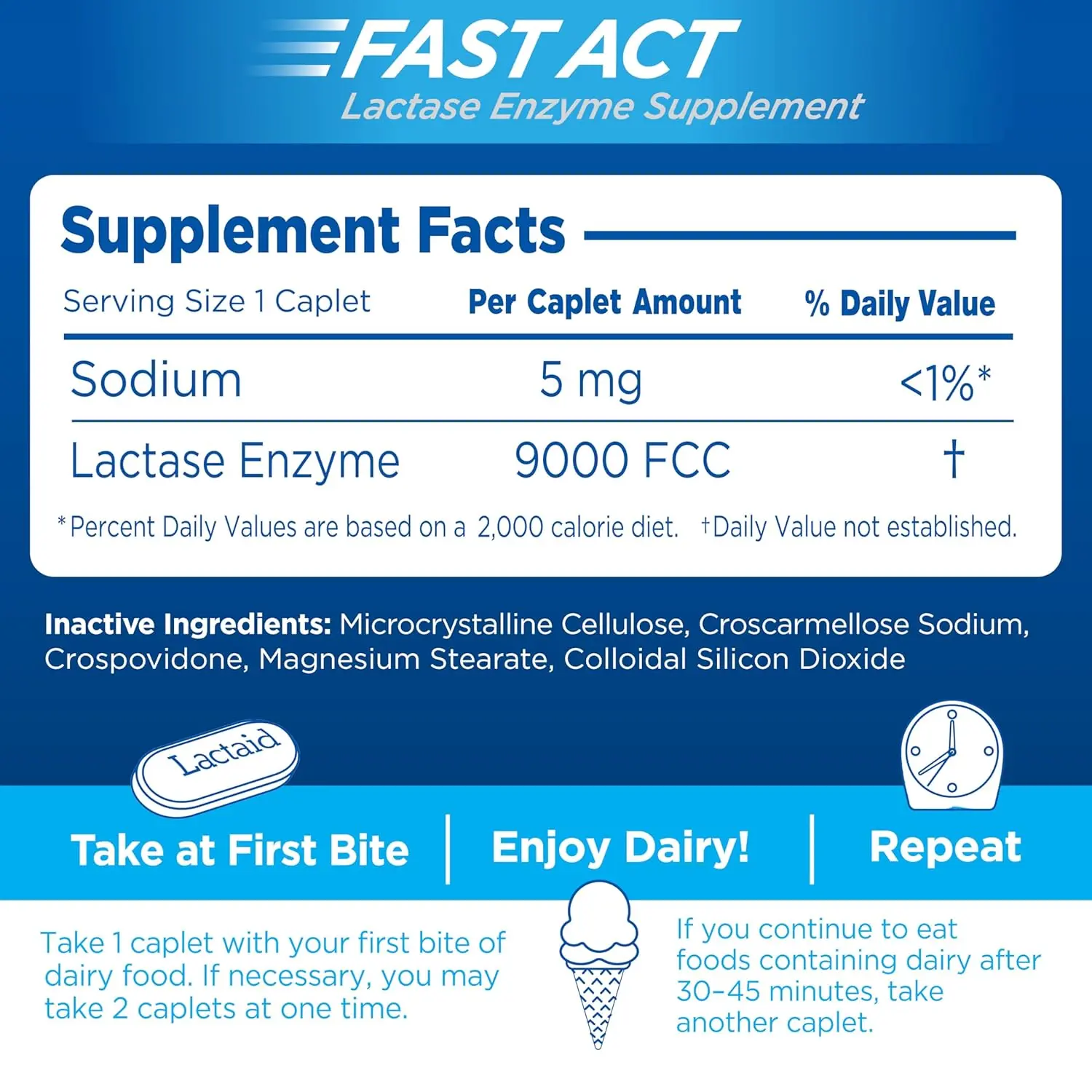 • Contains 9000 FCC lactase units to break down lactose