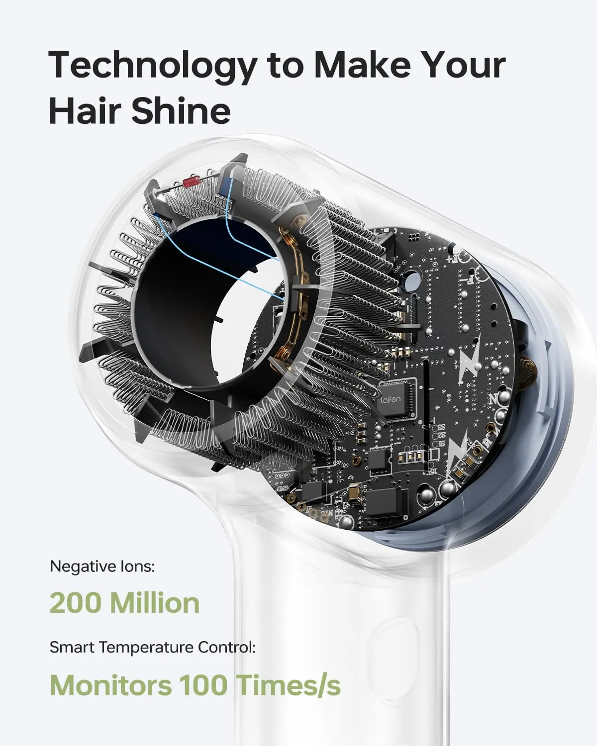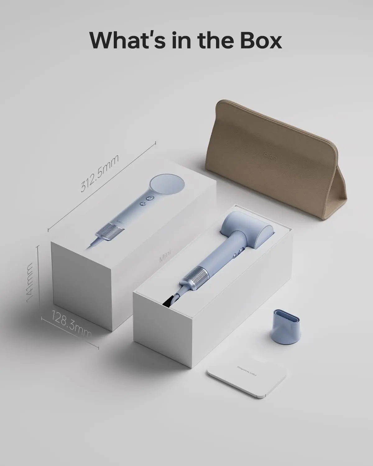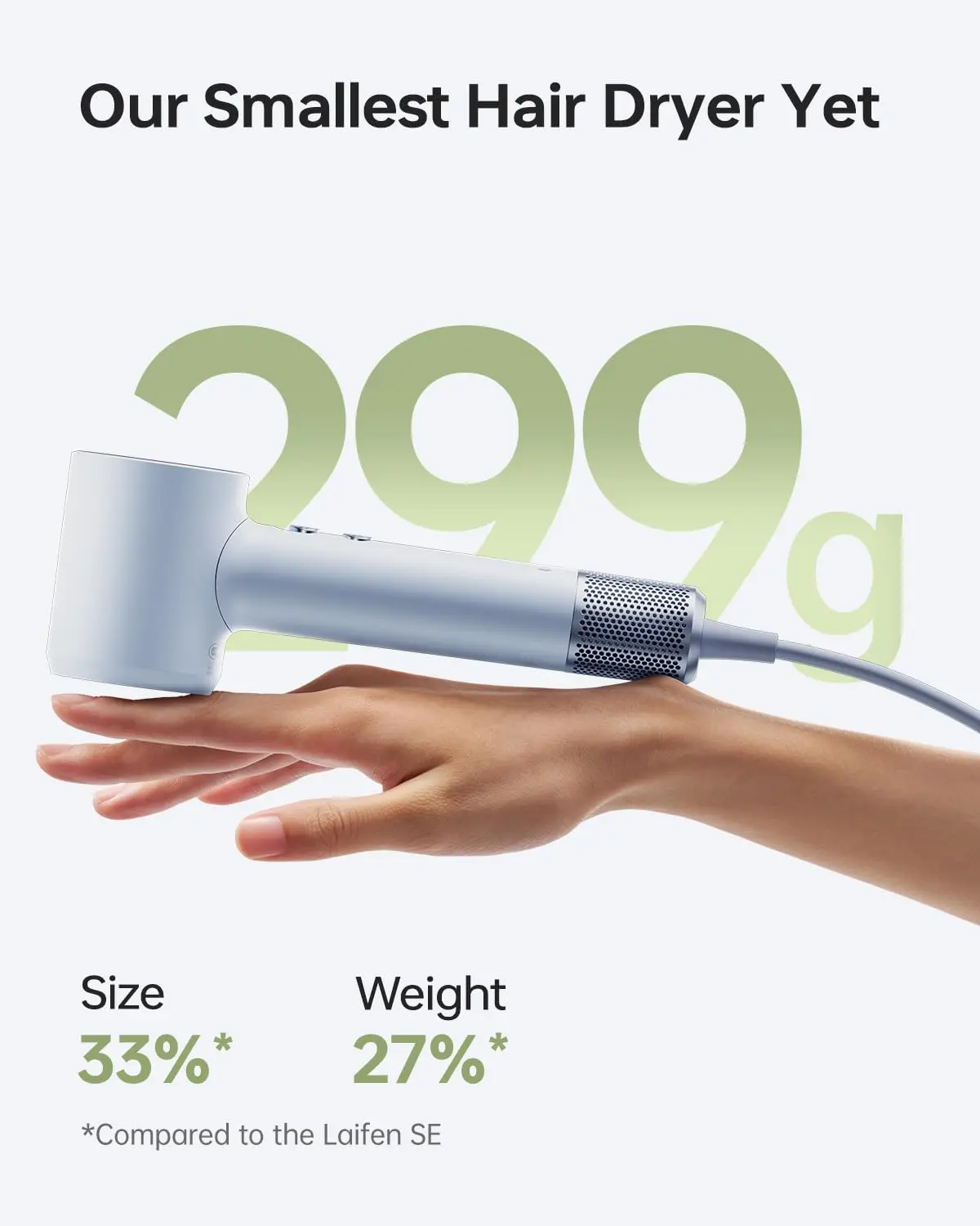 The Laifen Mini hairdryer: powerful, lightweight, and perfect for travel. Get salon-quality results with negative ion technology and intelligent heat control. Includes nozzle & bag.