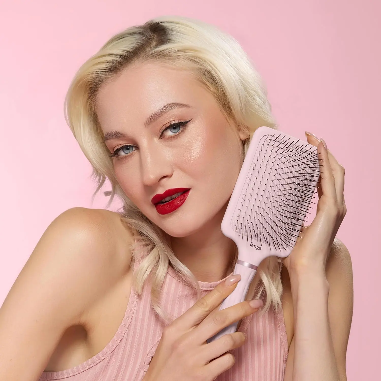 Experience effortless detangling and styling with the L’ANGE Detangling Paddle Brush. This versatile brush is designed to gently glide through wet or dry hair, eliminating knots and tangles without painful pulling or snagging. Soft nylon bristles, featuring rounded tips, provide a soothing scalp massage, stimulating circulation and promoting healthy hair growth while reducing breakage. The wide, cushioned base allows you to efficiently style large sections of hair, making your daily routine faster and more effective. Whether you’re detangling post-shower damp hair or refreshing your style on dry hair, this paddle brush delivers salon-ready results at home or on the go. The lightweight, non-slip handle ensures a comfortable and secure grip, making styling a breeze. Achieve smooth, healthy-looking hair every day with the L’ANGE Detangling Paddle Brush. Perfect for all hair types, this brush is an essential tool for maintaining beautiful, tangle-free hair. Upgrade your hair care routine and enjoy effortless styling with this must-have brush.
