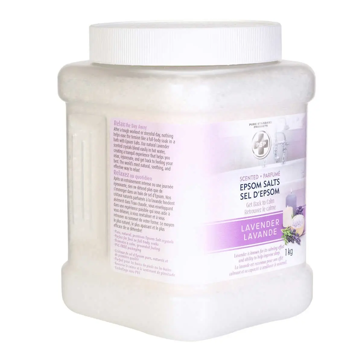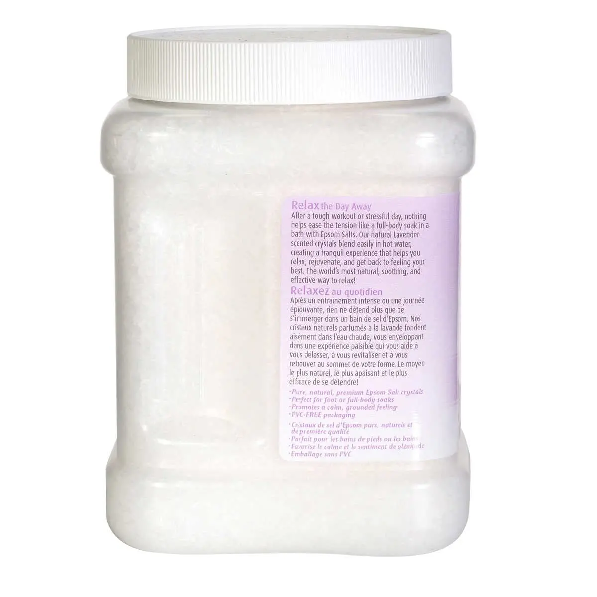 Experience relaxation with our Lavender Epsom Salts. Made with natural crystals, lavender scent, and PVC-free packaging. Ideal for muscle recovery and stress relief.